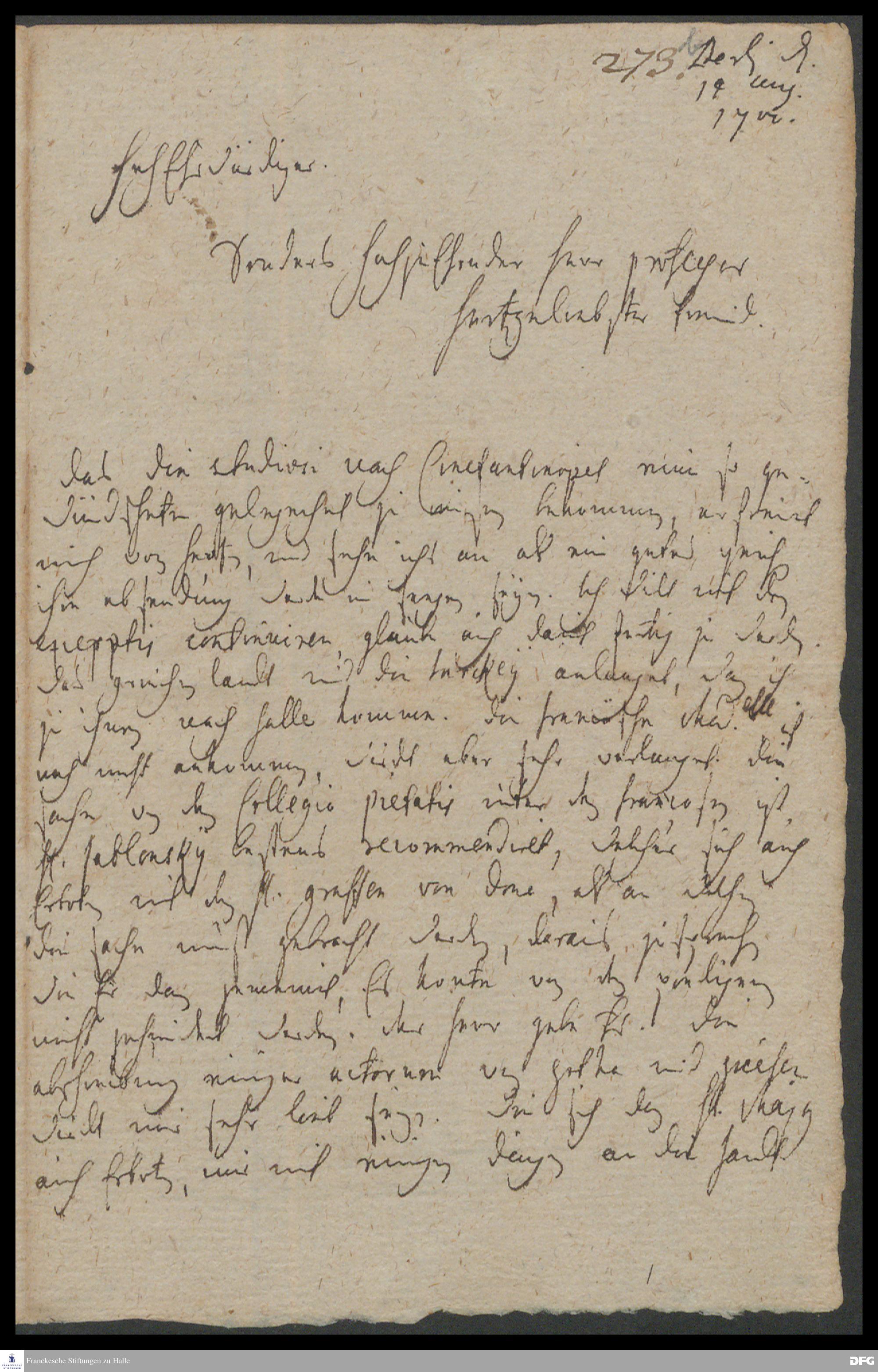 Brief von Carl Hildebrand v. Canstein an August Hermann Francke.