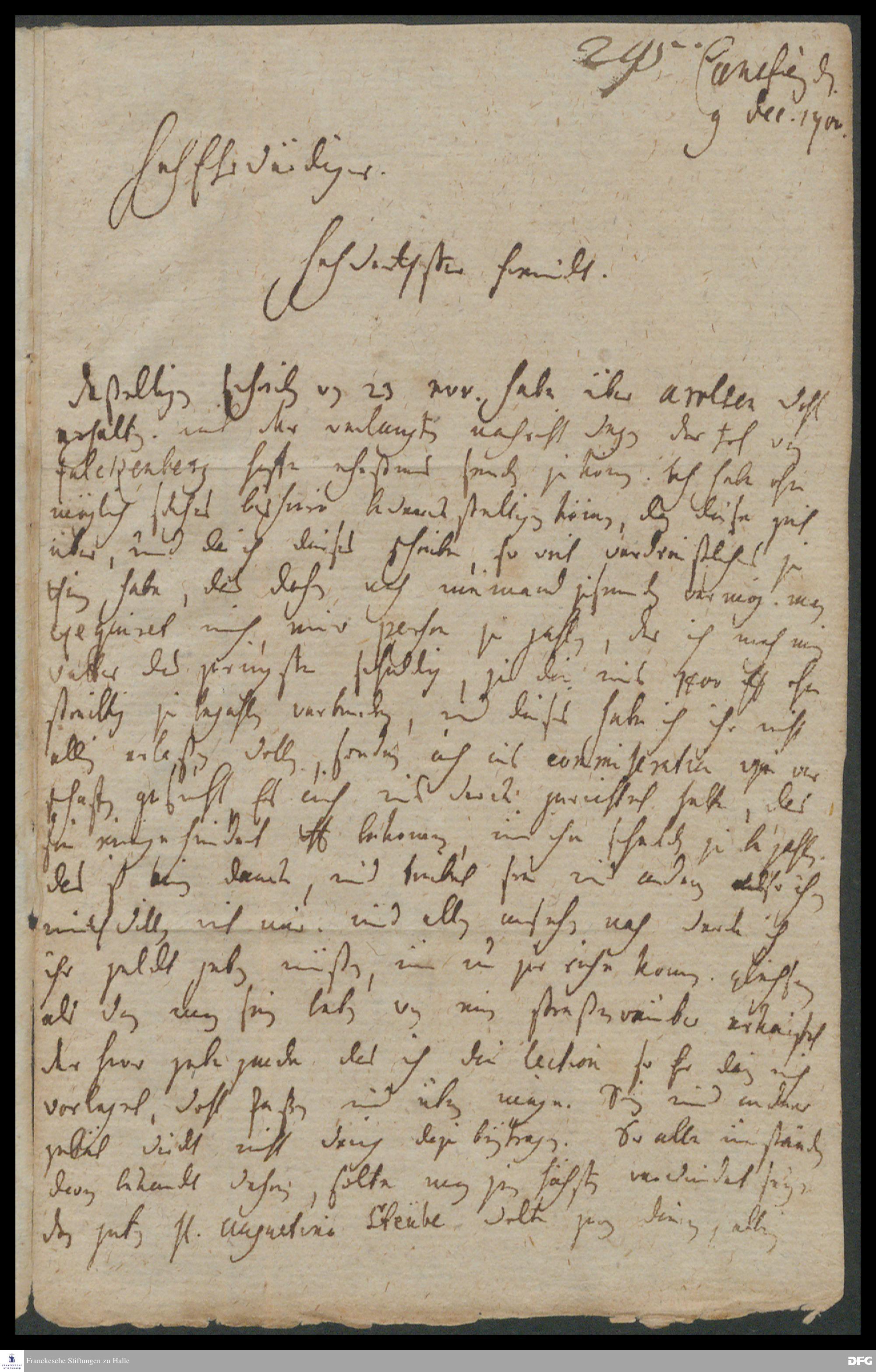 Brief von Carl Hildebrand v. Canstein an August Hermann Francke.