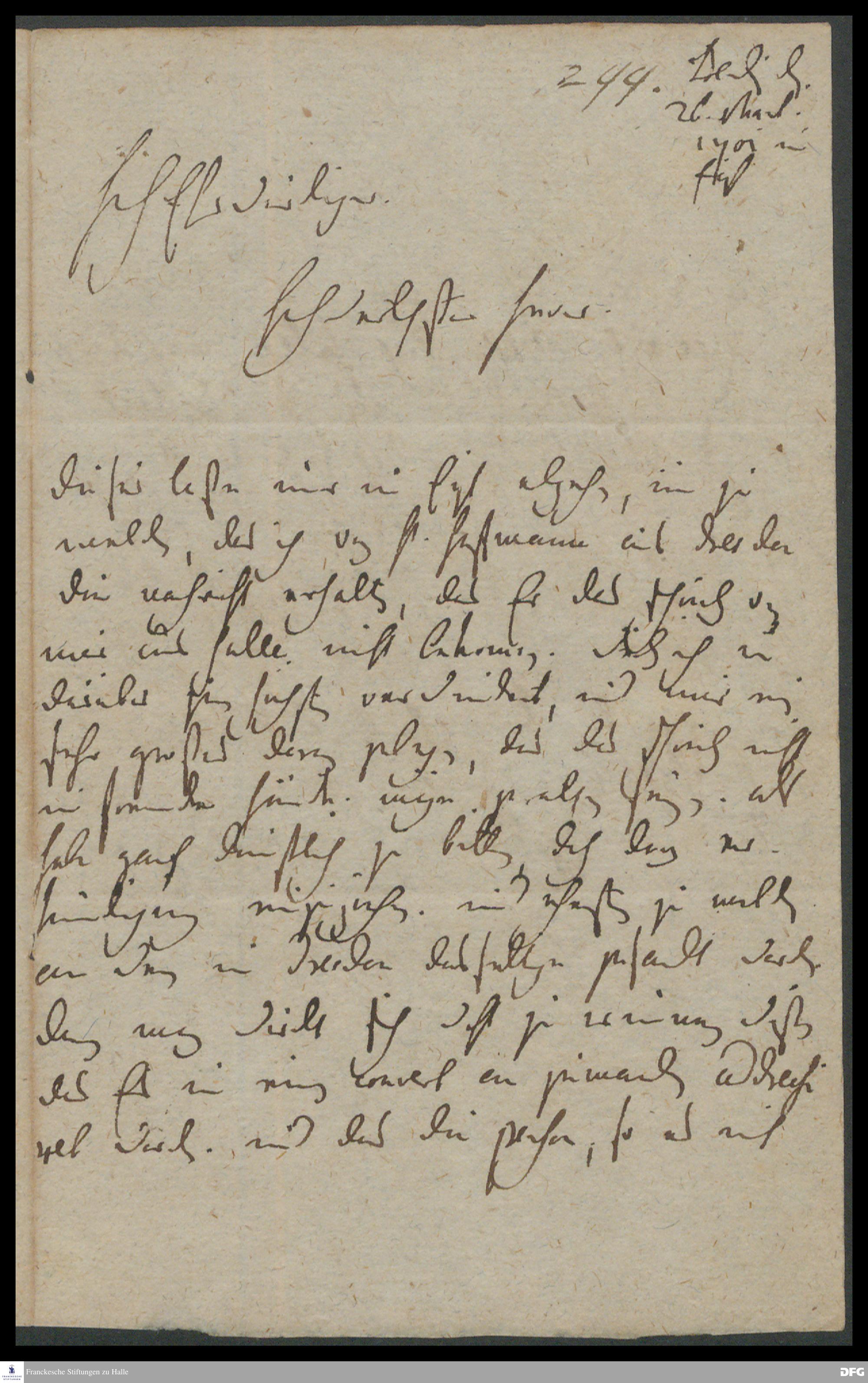 Brief von Carl Hildebrand v. Canstein an August Hermann Francke.