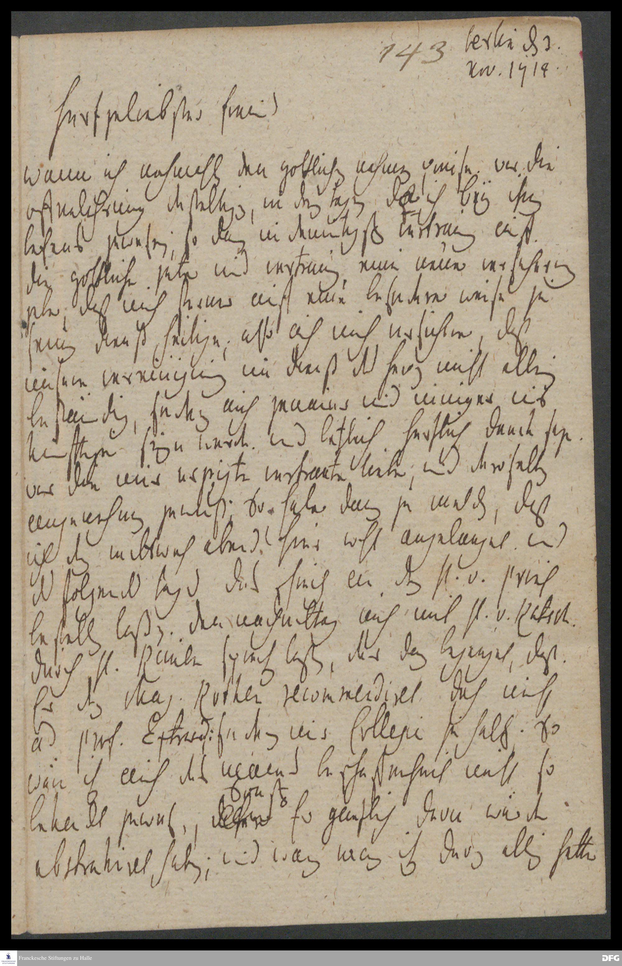 Brief von Carl Hildebrand v. Canstein an August Hermann Francke.