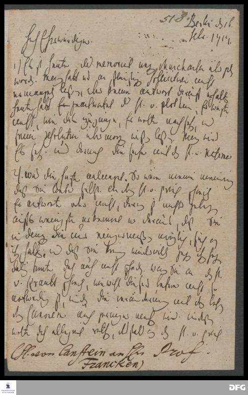 Brief von Carl Hildebrand v. Canstein an August Hermann Francke.