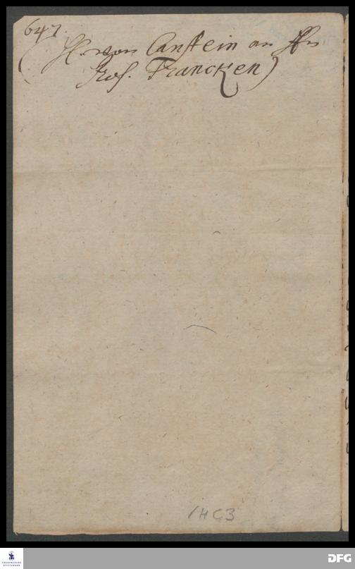 Brief von Carl Hildebrand v. Canstein an August Hermann Francke.