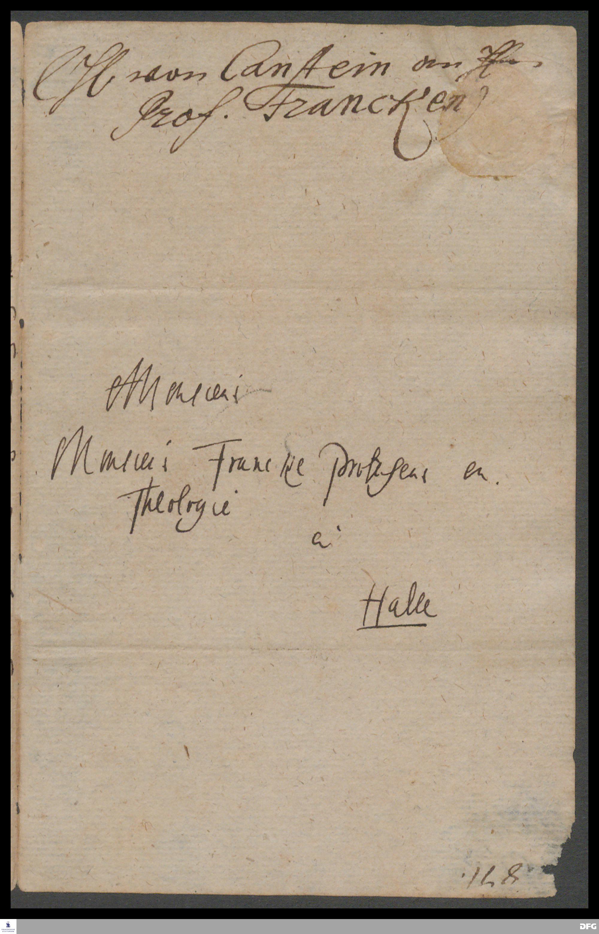 Brief von Carl Hildebrand v. Canstein an August Hermann Francke.
