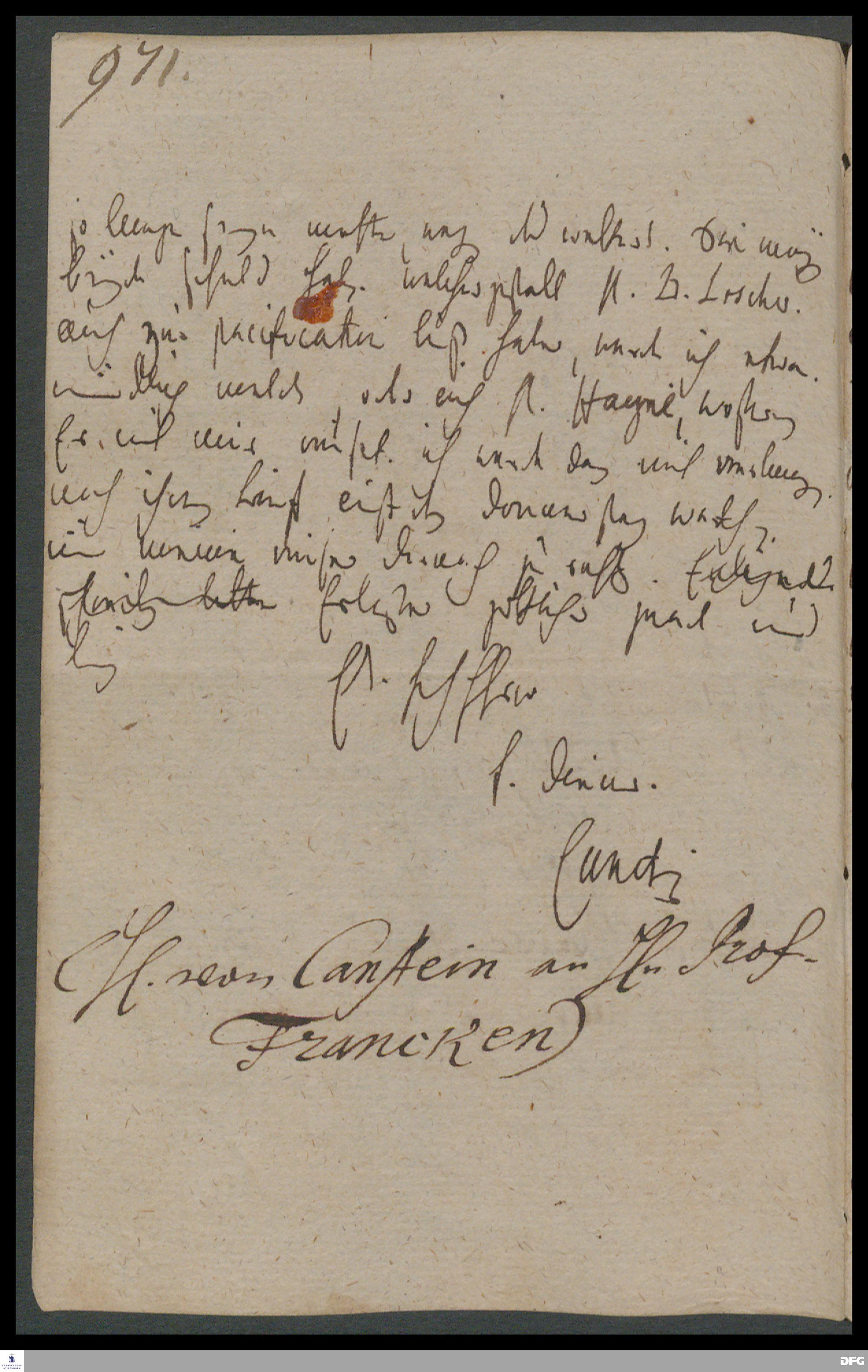 Brief von Carl Hildebrand v. Canstein an August Hermann Francke.