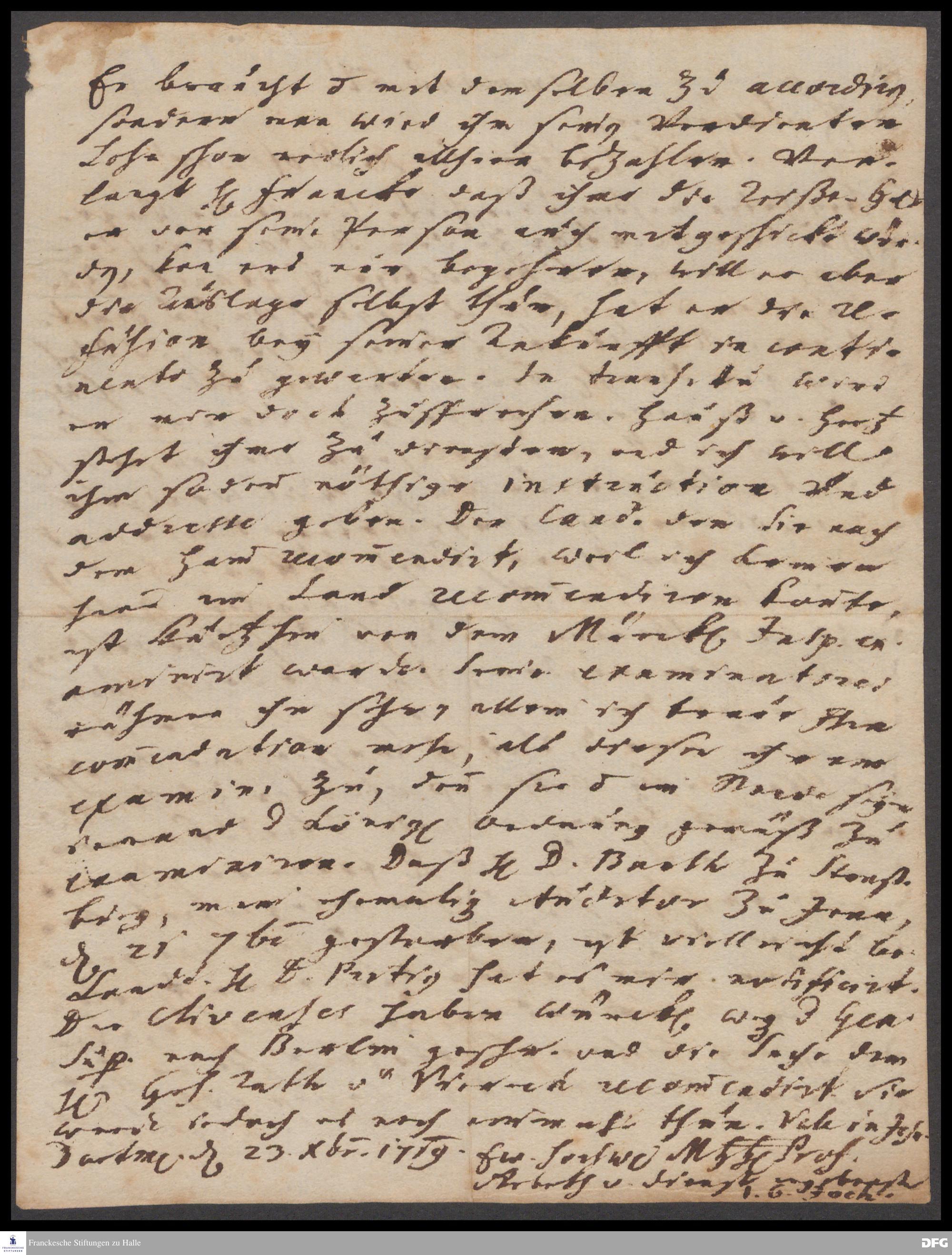 Brief von Johann Georg Joch an August Hermann Francke.