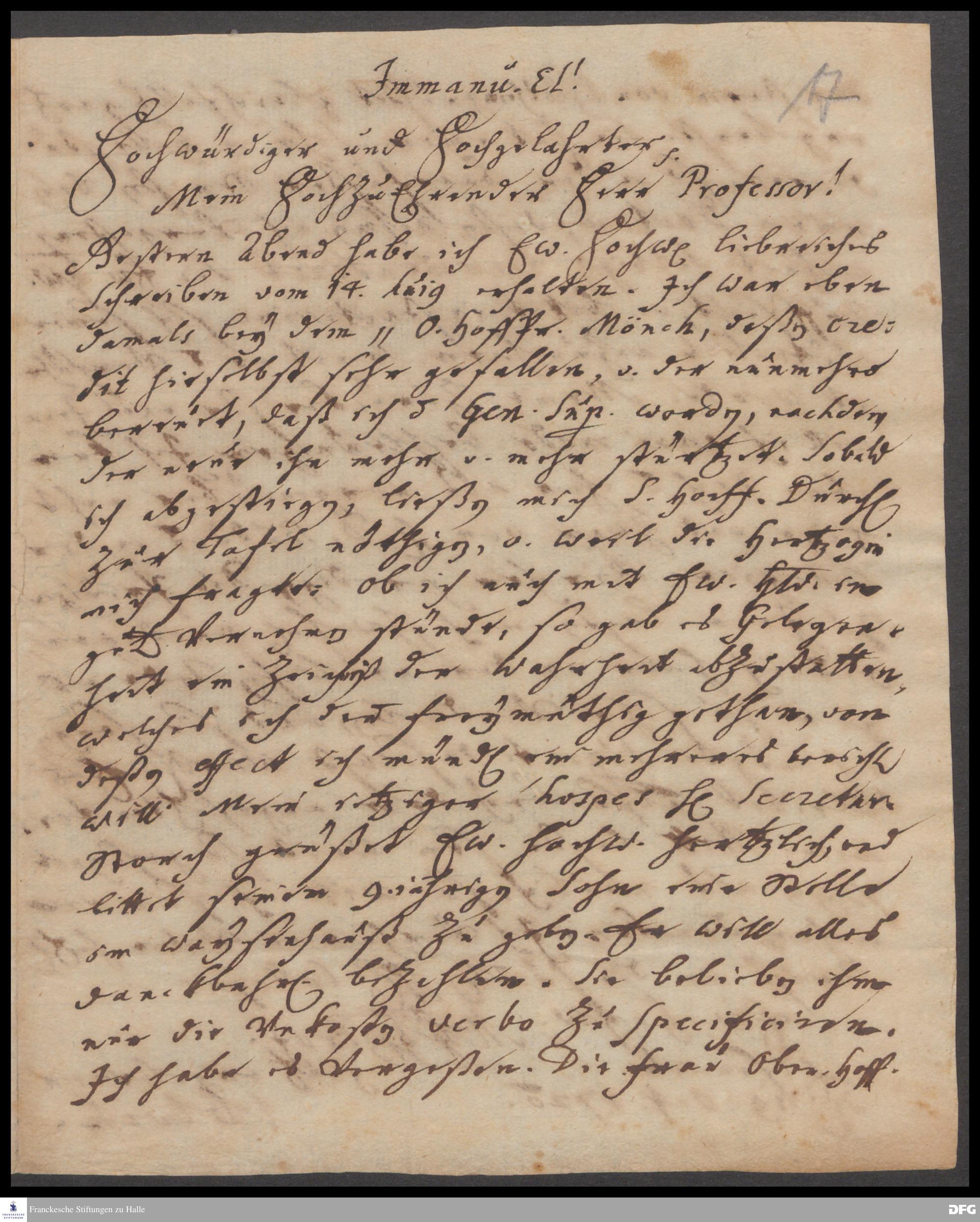 Brief von Johann Georg Joch an August Hermann Francke.
