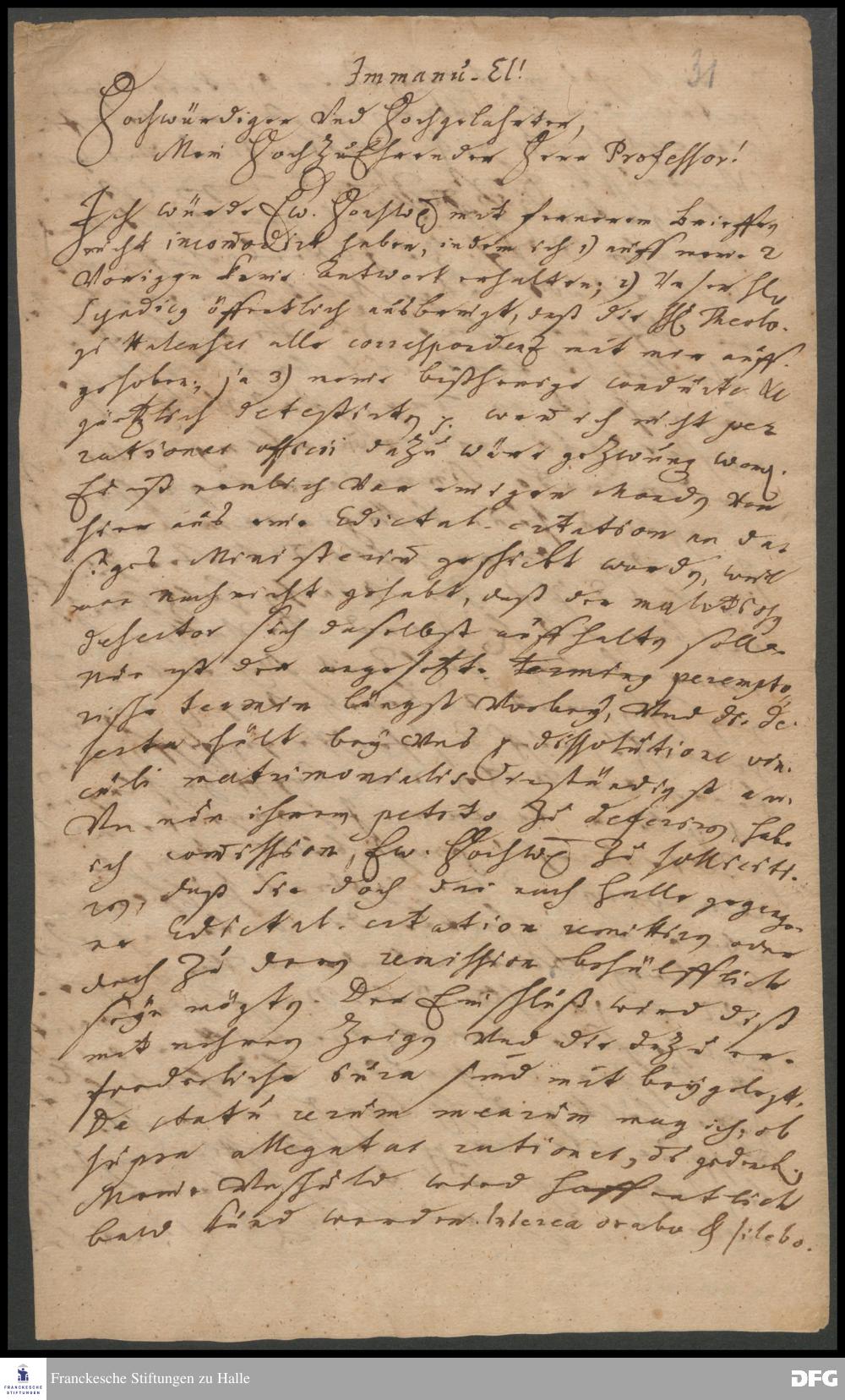 Brief von Johann Georg Joch an August Hermann Francke.