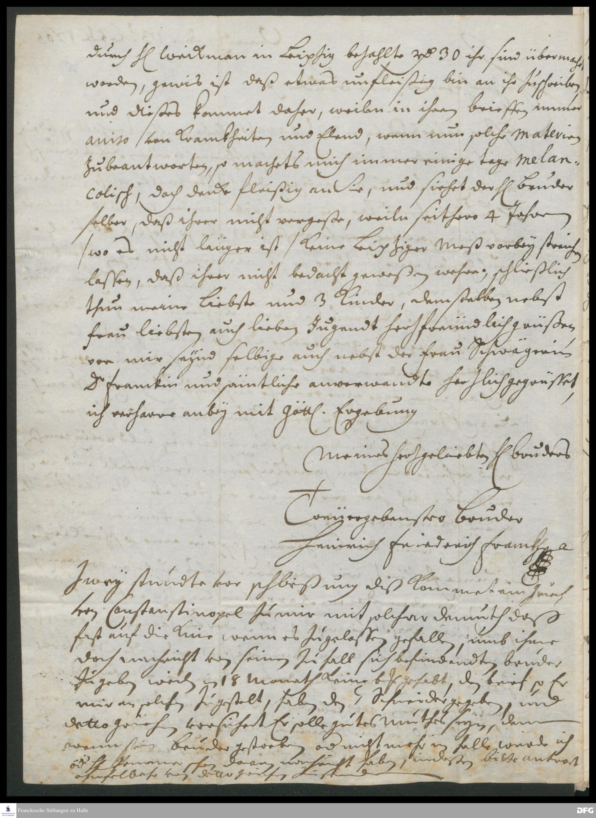 Brief von Heinrich Friedrich Francke an August Hermann Francke.