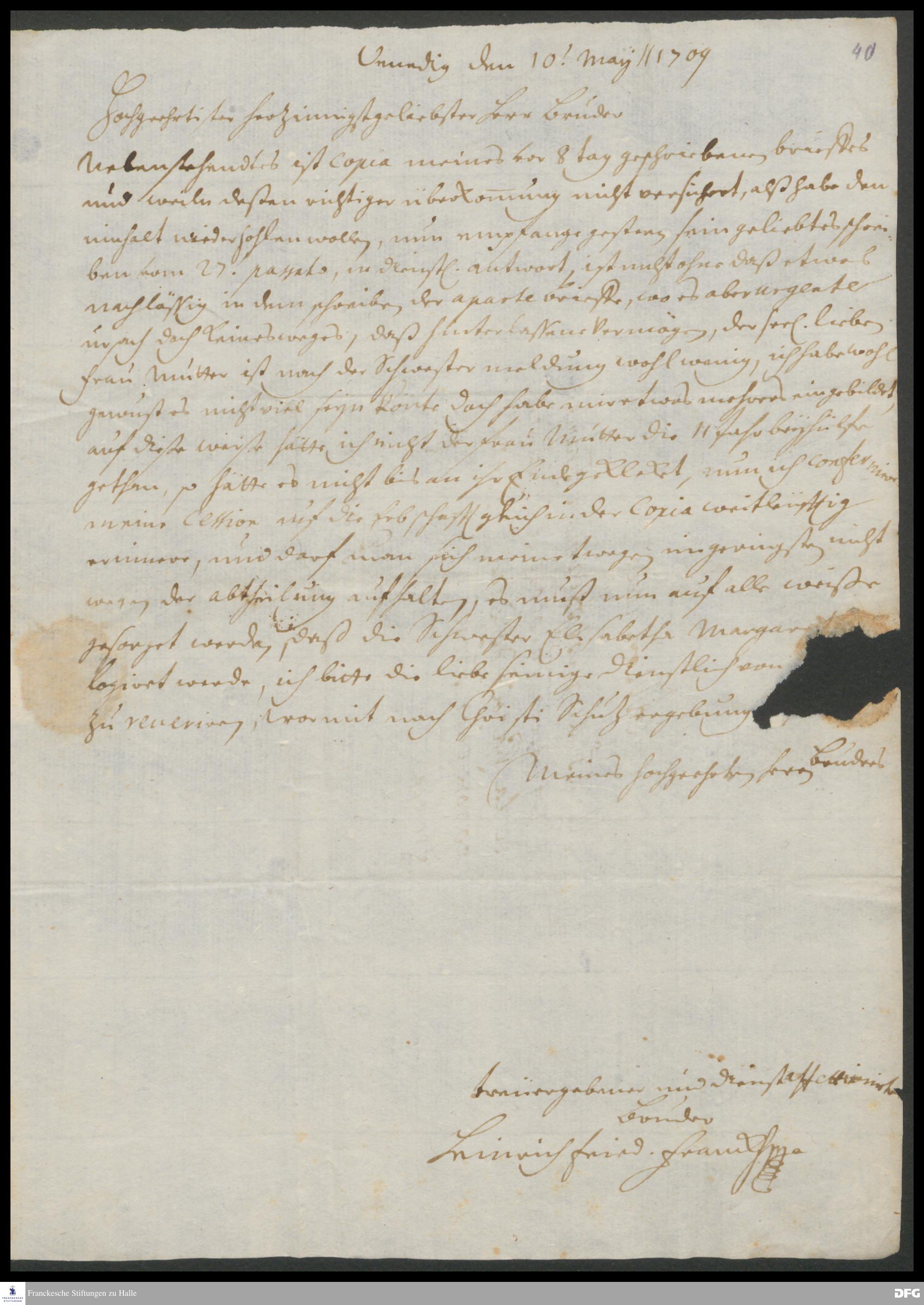 Brief von Heinrich Friedrich Francke an August Hermann Francke.