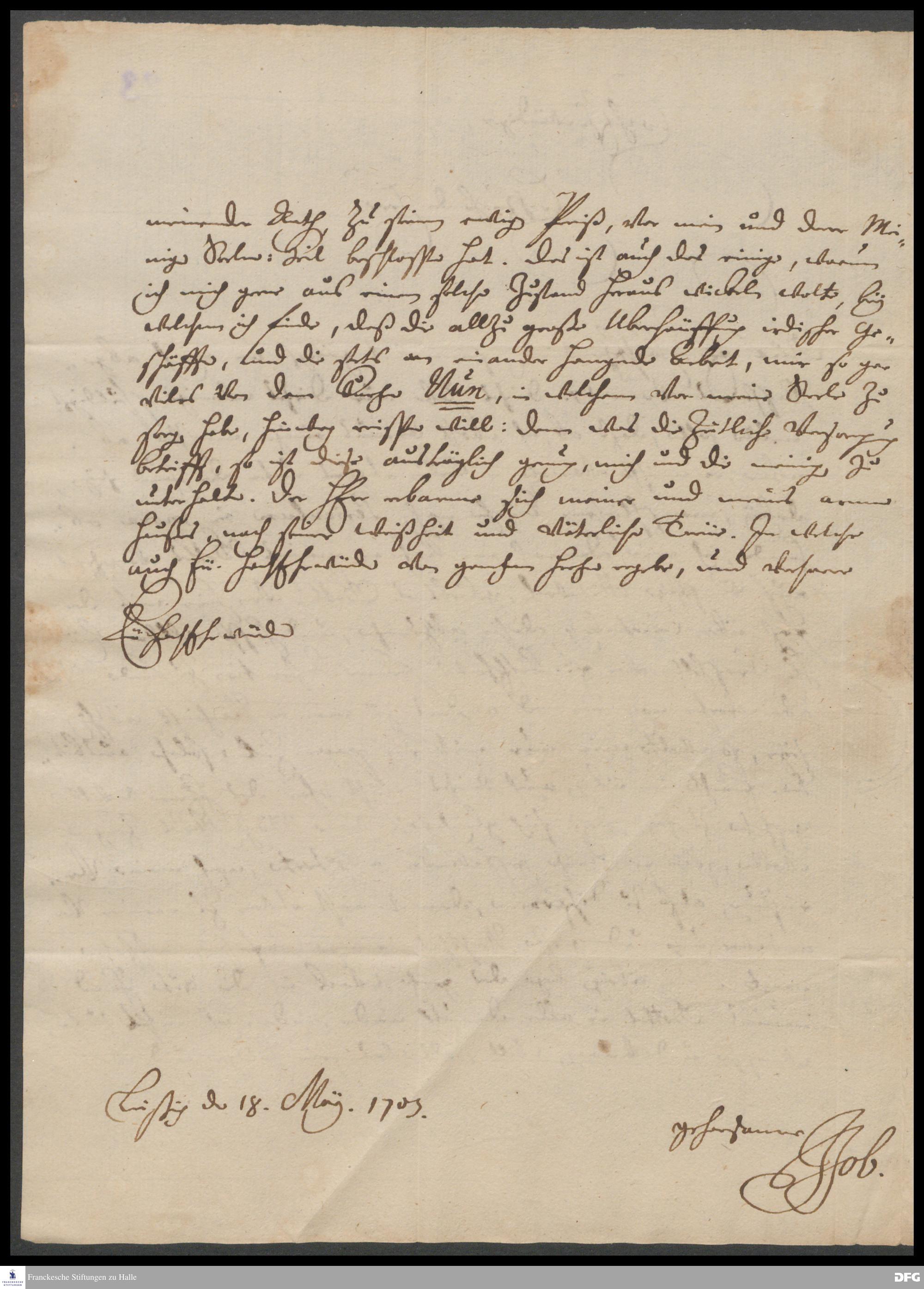 Brief von Johann Job an August Hermann Francke.
