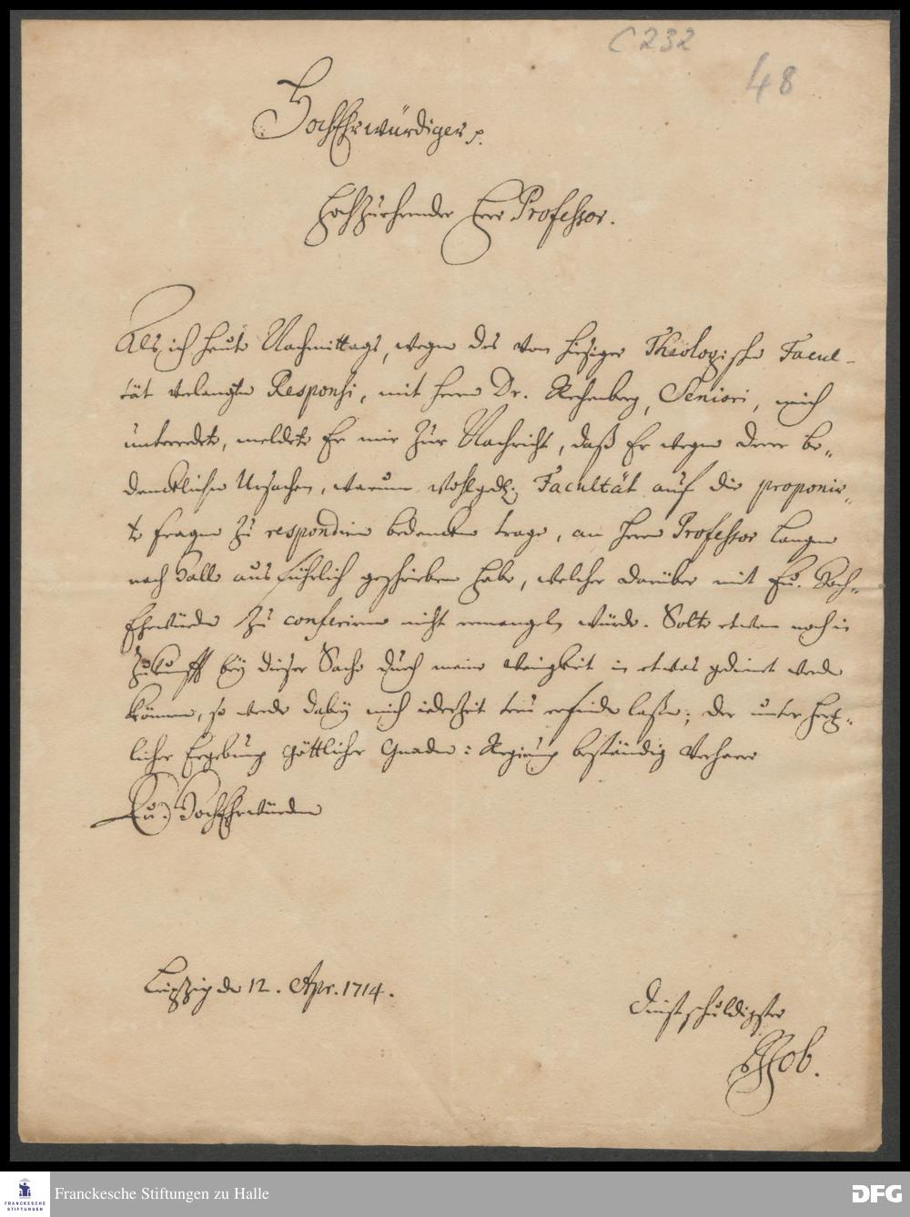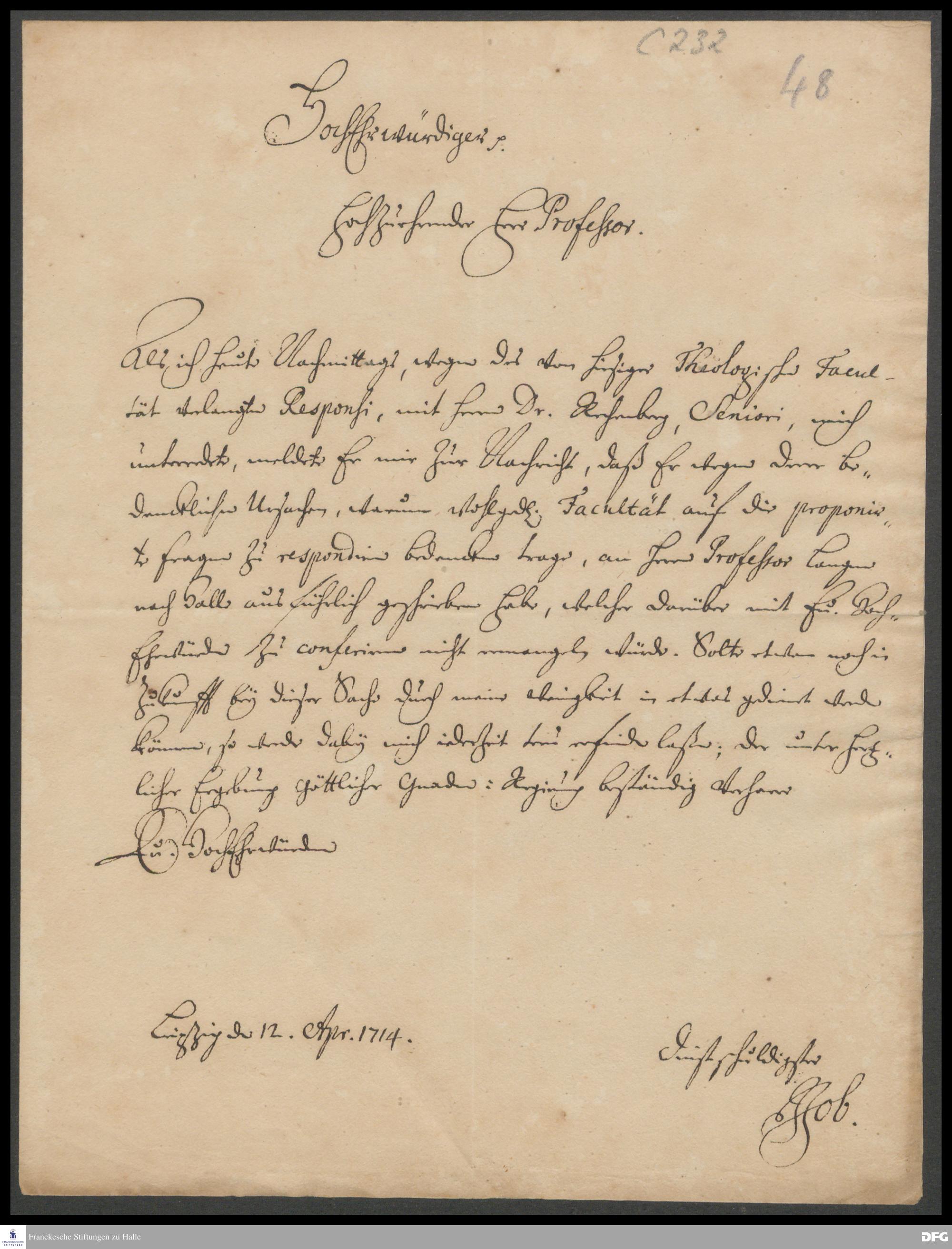 Brief von Johann Job an August Hermann Francke.