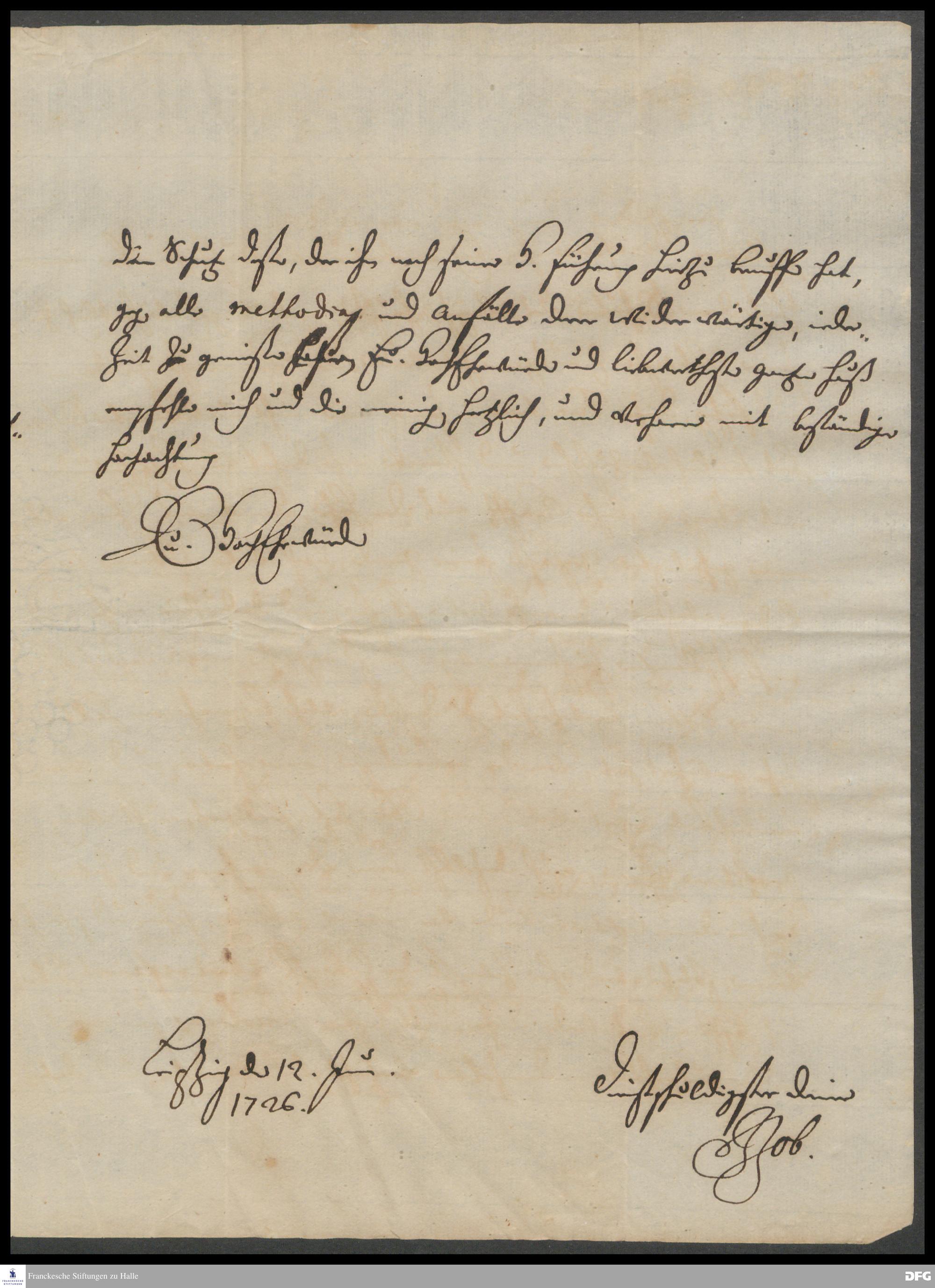 Brief von Johann Job an August Hermann Francke.