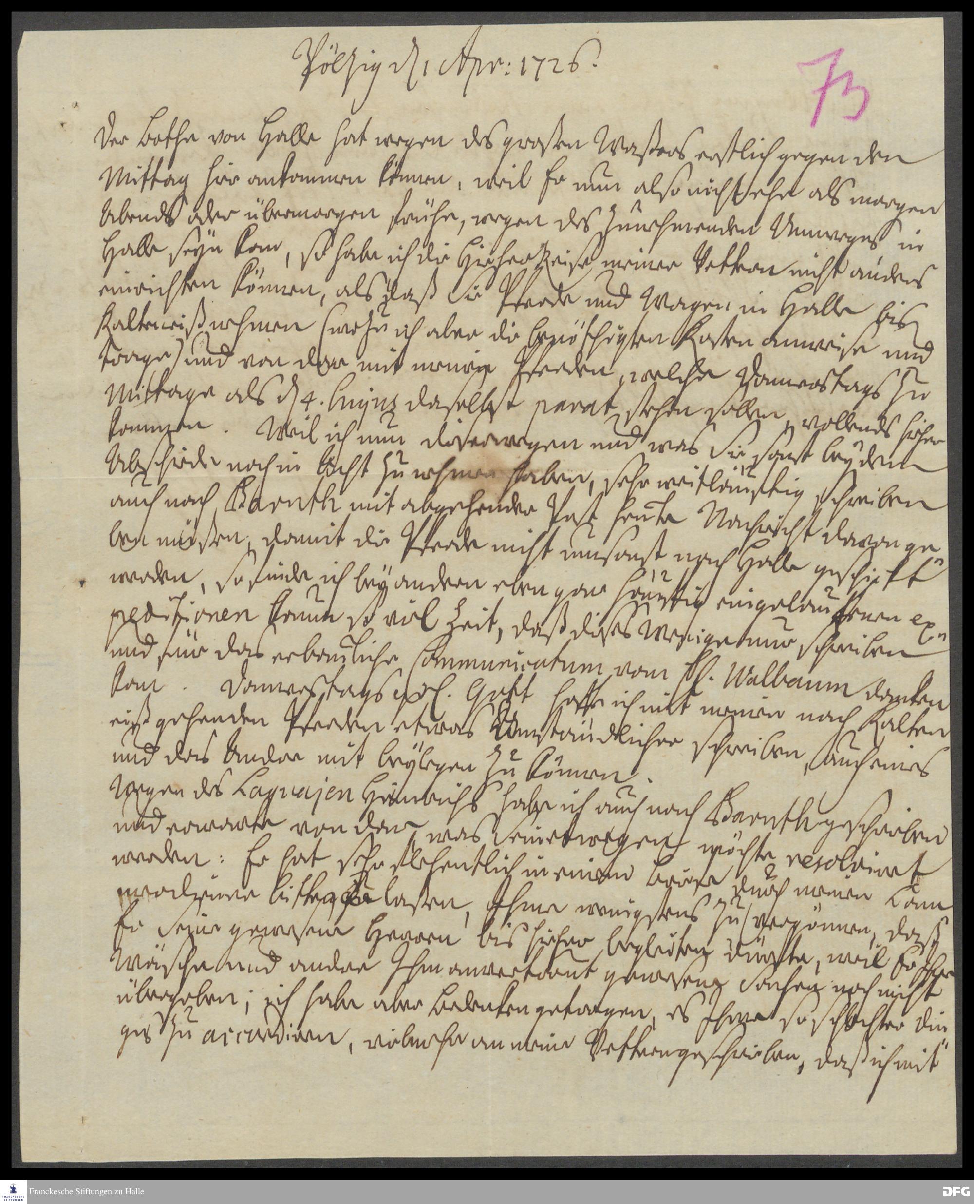 Brief von Erdmann Heinrich Henckel v. Donnersmarck an [August Hermann Francke ?].