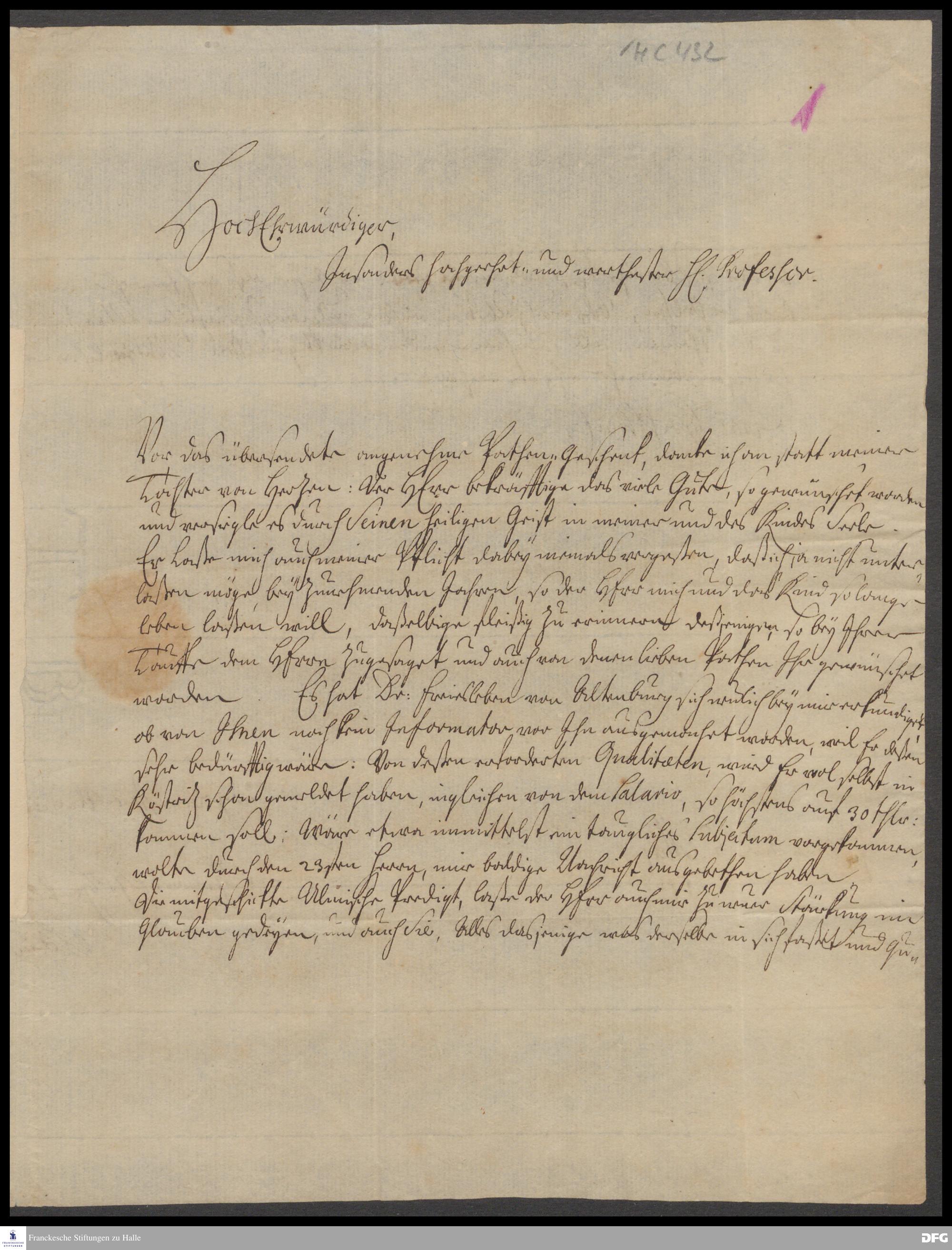 Brief von Erdmann Heinrich Henckel v. Donnersmarck an August Hermann Francke.