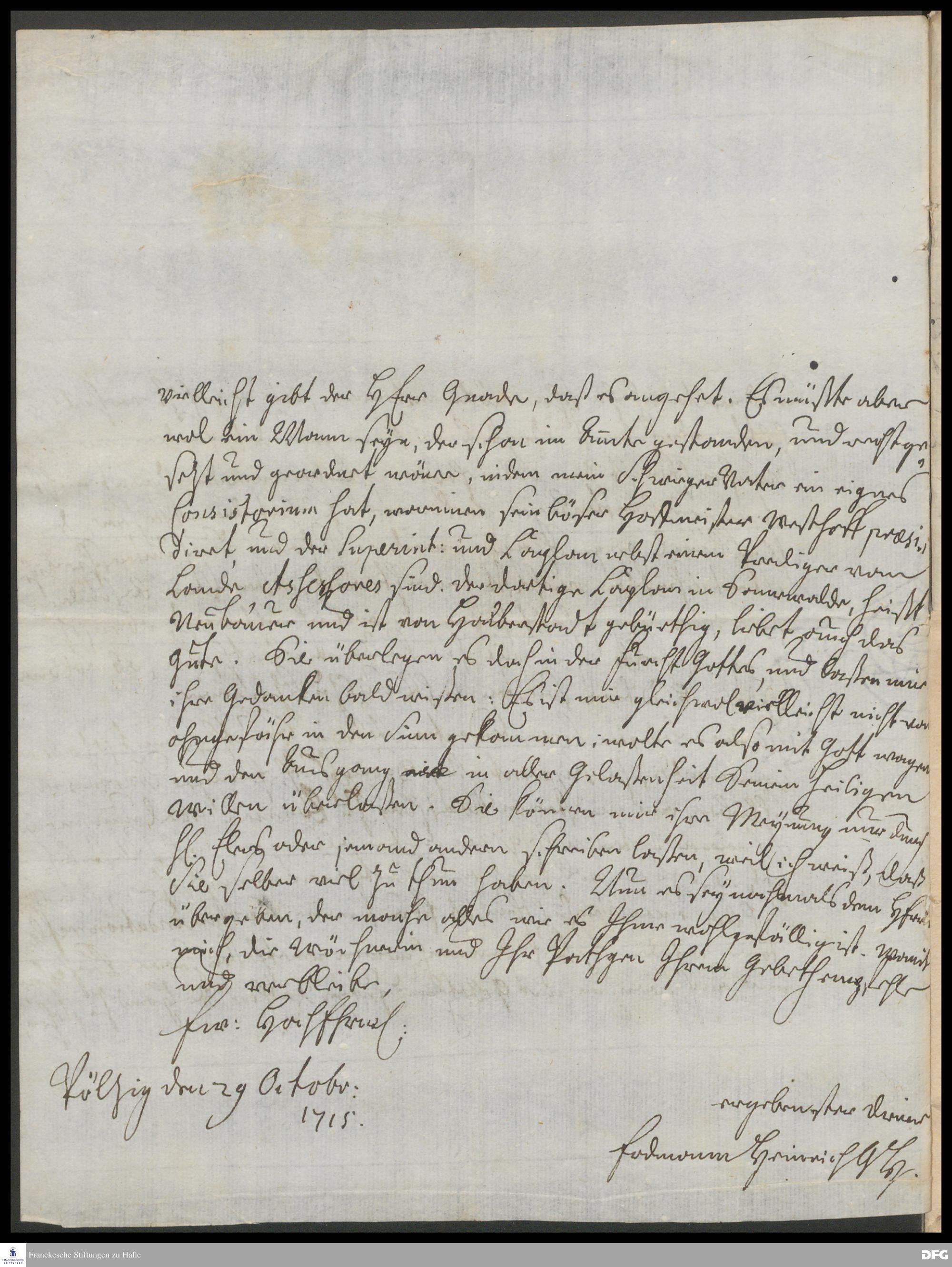 Brief von Erdmann Heinrich Henckel v. Donnersmarck an August Hermann Francke.