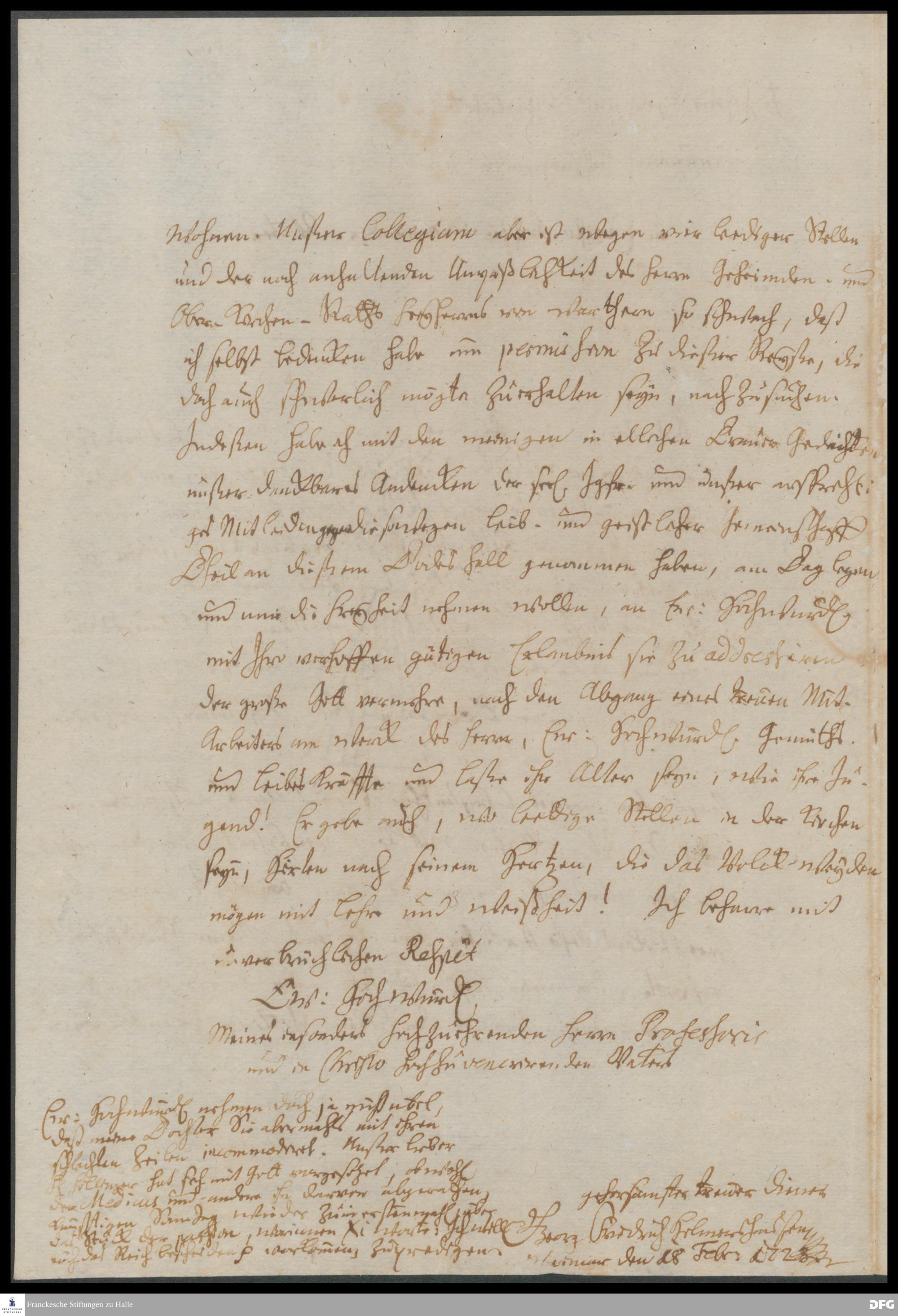 Brief von Georg Friedrich Helmershausen an August Hermann Francke.