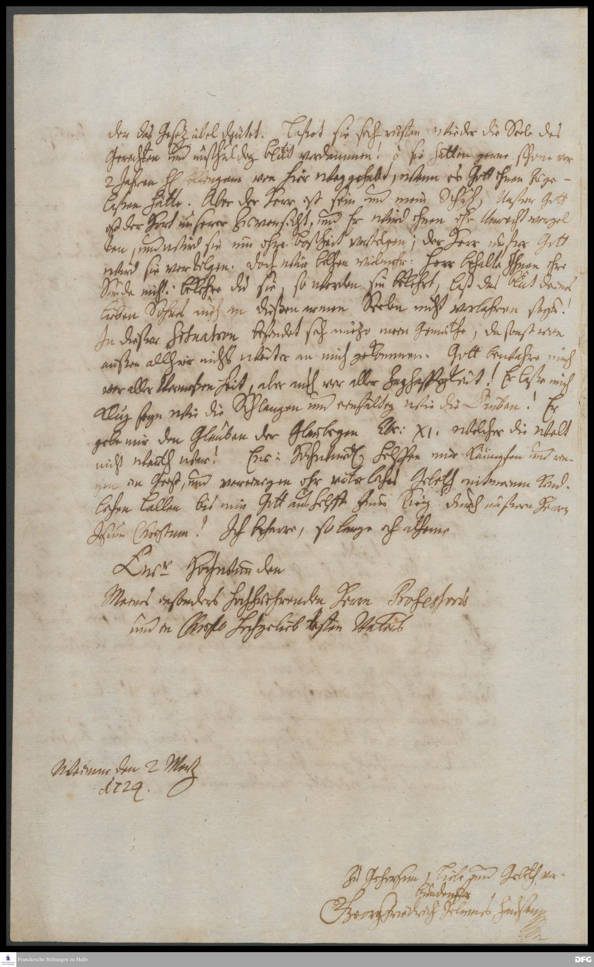 Brief von Georg Friedrich Helmershausen an August Hermann Francke.