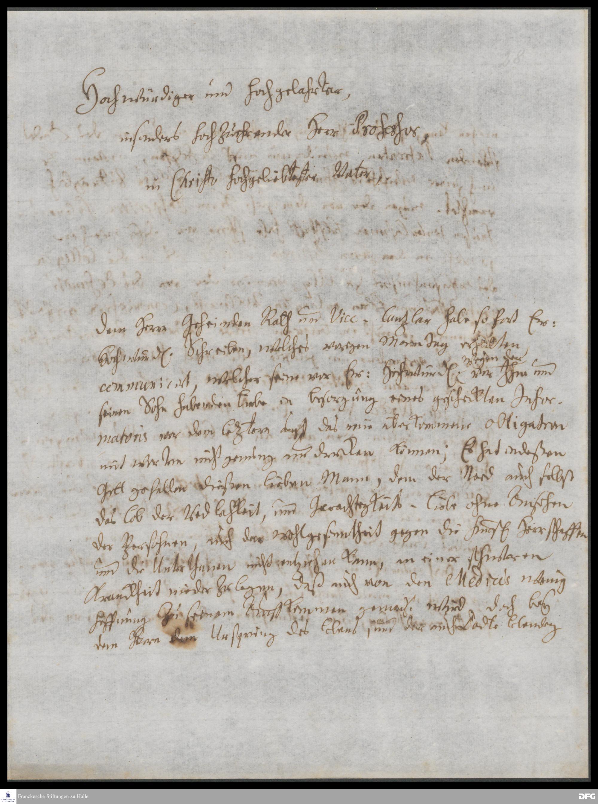 Brief von Georg Friedrich Helmershausen an August Hermann Francke.
