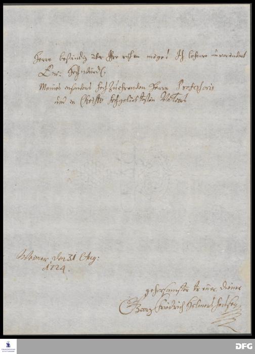 Brief von Georg Friedrich Helmershausen an August Hermann Francke.
