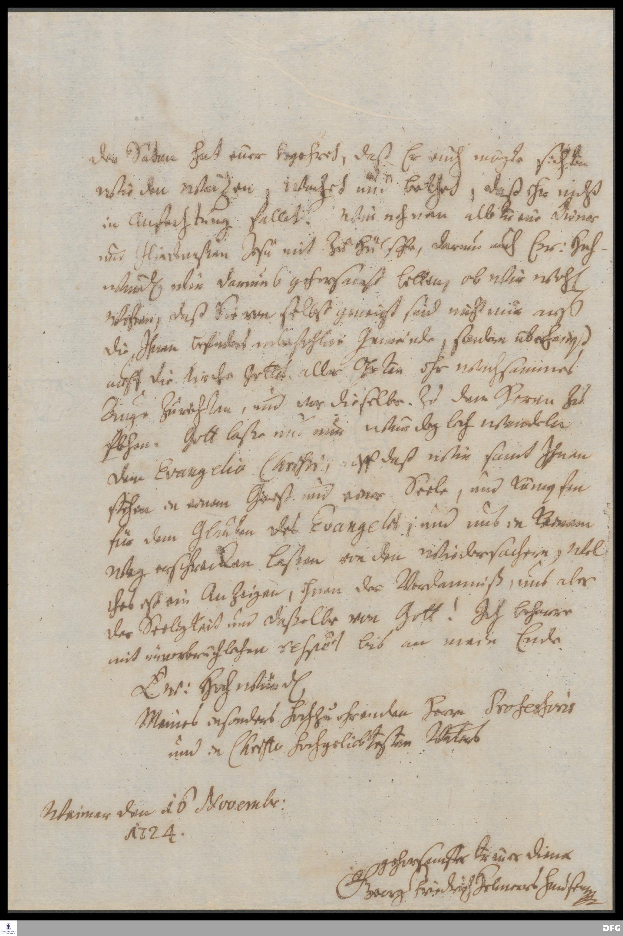 Brief von Georg Friedrich Helmershausen an August Hermann Francke.