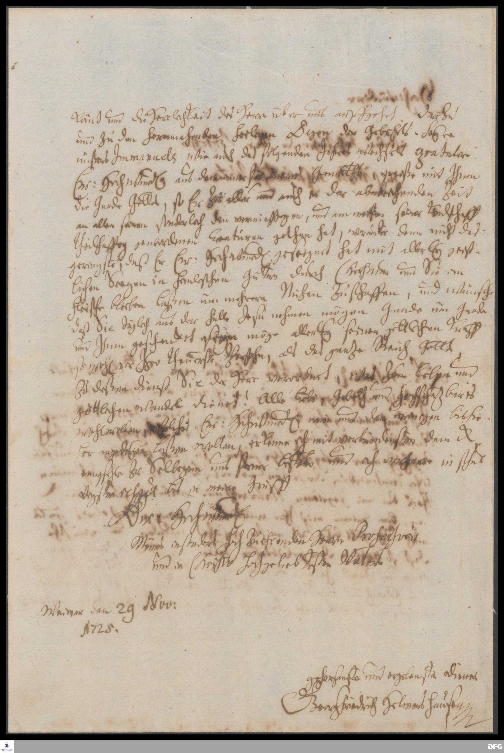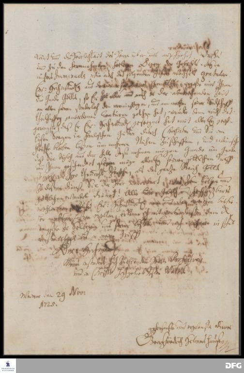 Brief von Georg Friedrich Helmershausen an August Hermann Francke.