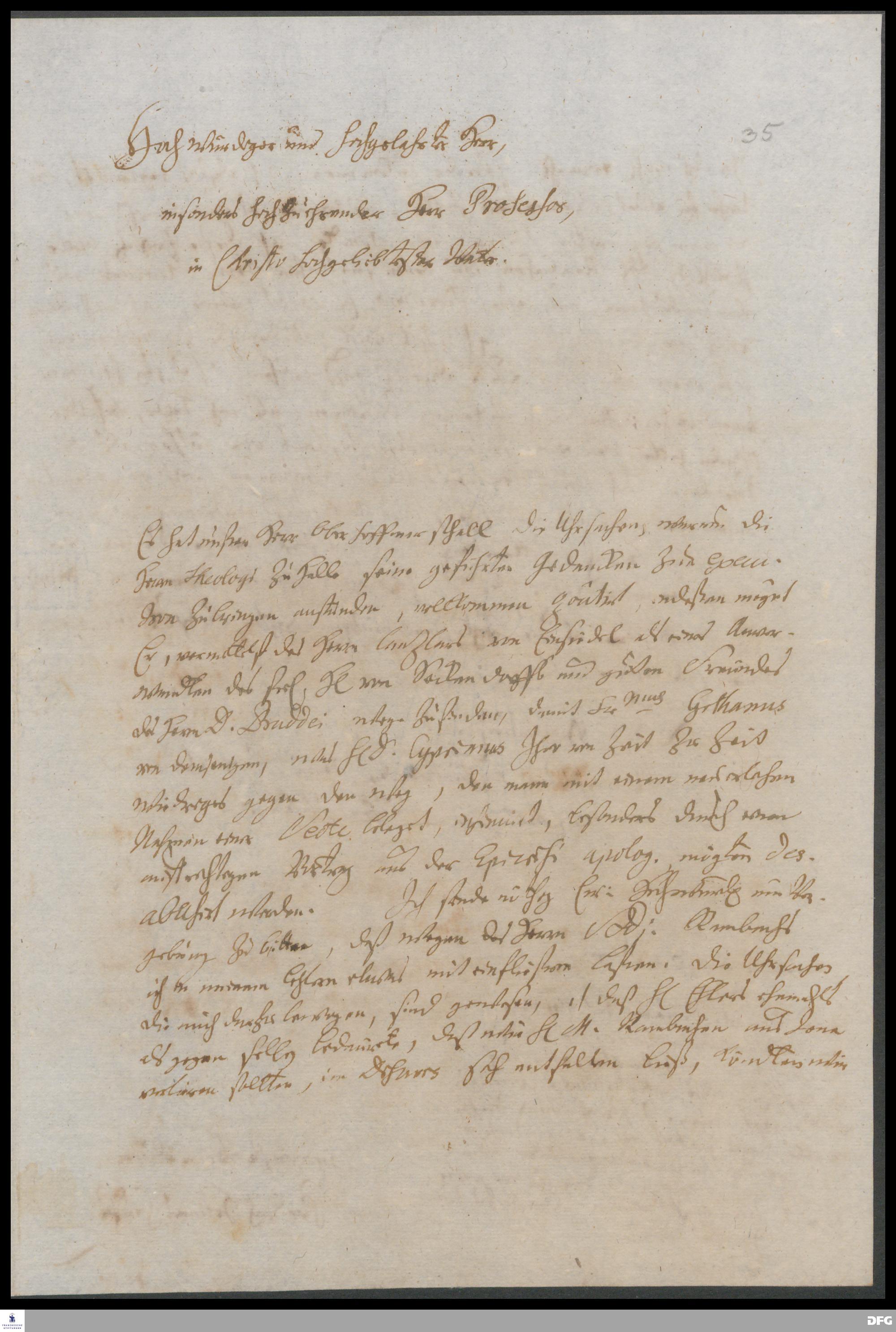 Brief von Georg Friedrich Helmershausen an August Hermann Francke.