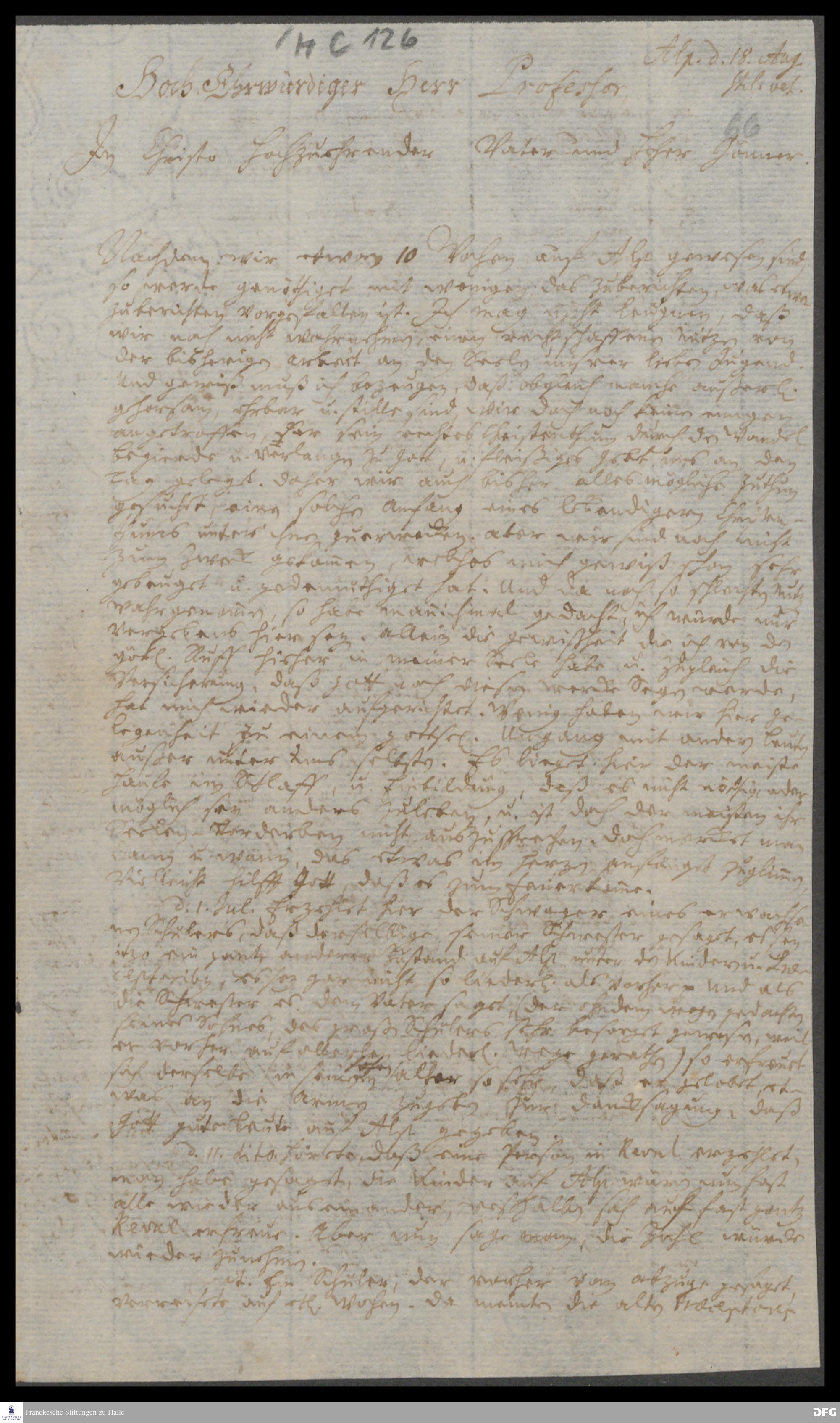 Brief von Christoph Heinrich Helmershausen an August Hermann Francke.