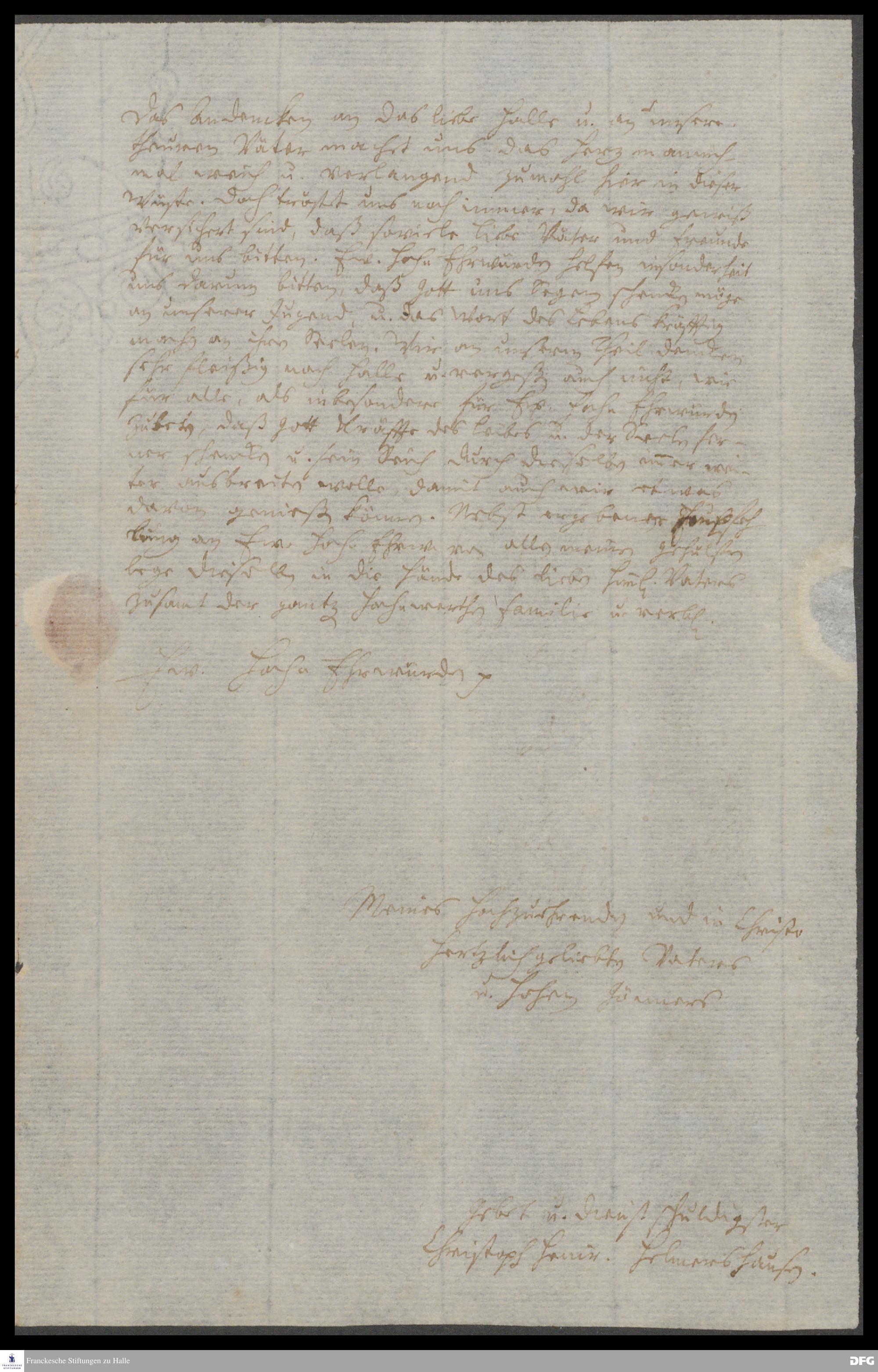 Brief von Christoph Heinrich Helmershausen an August Hermann Francke.