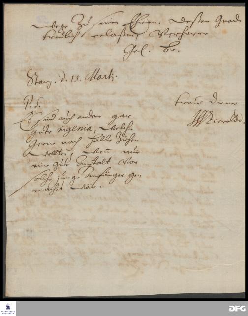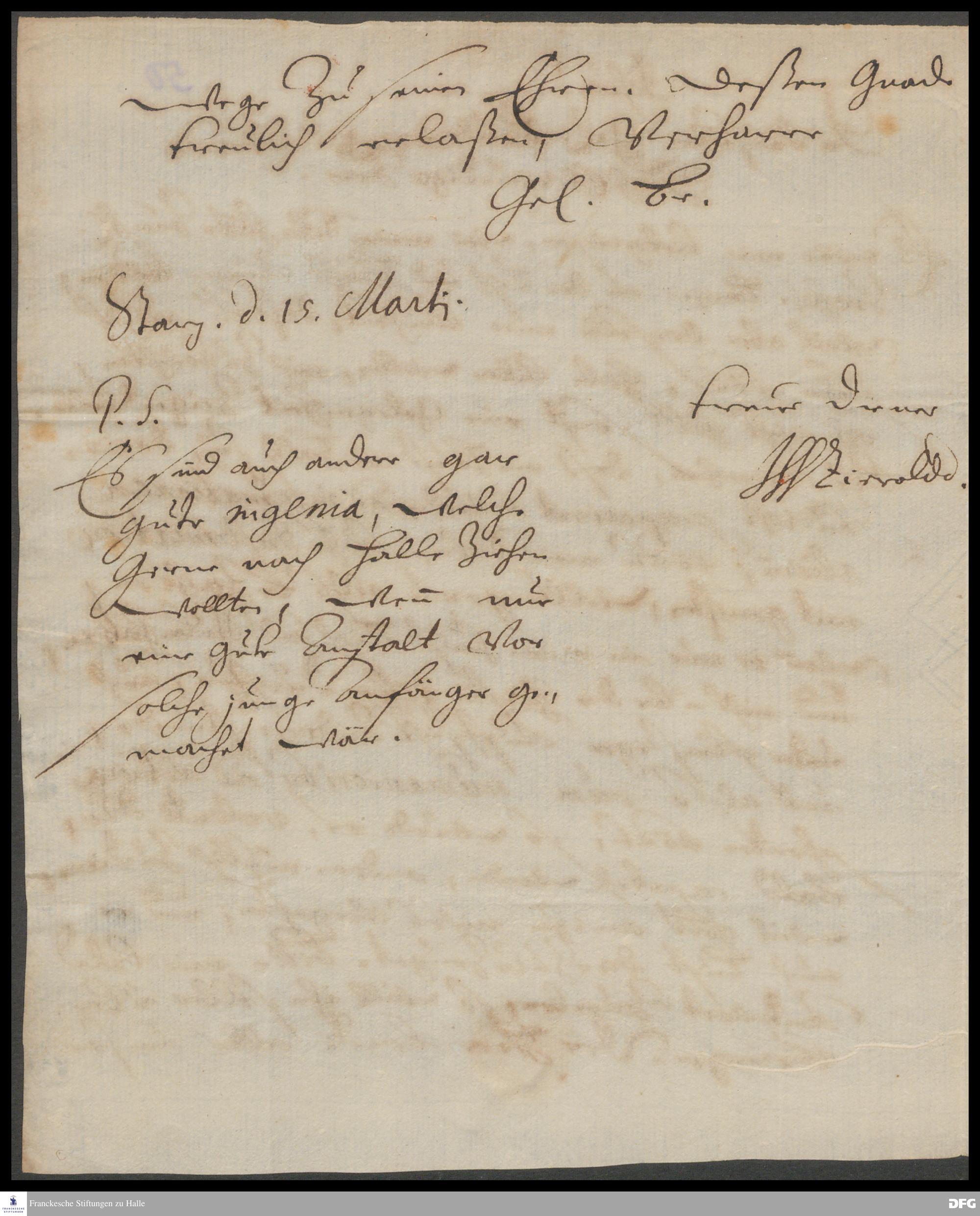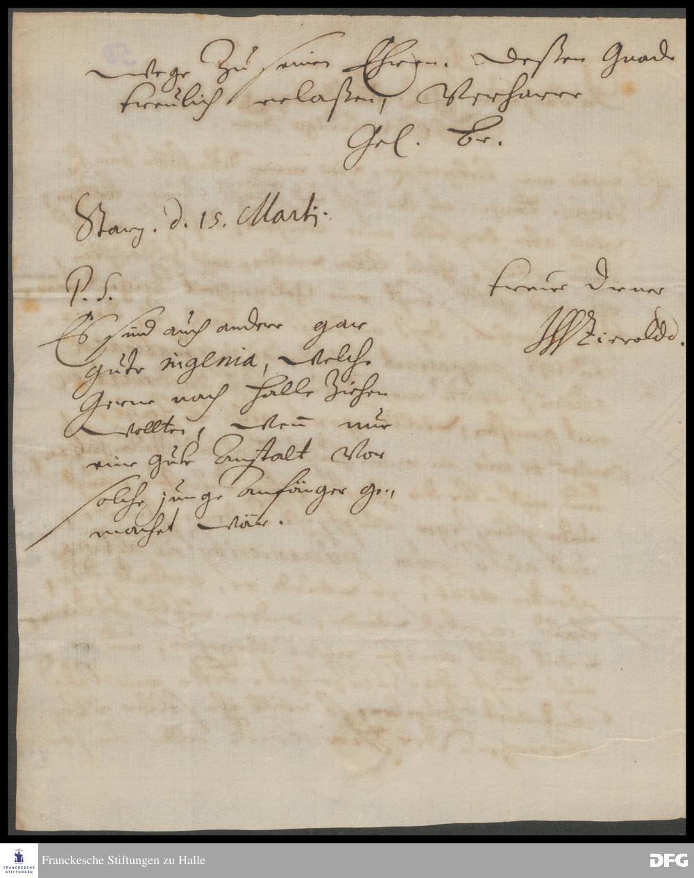 Brief von Johann Wilhelm Zierold an August Hermann Francke.