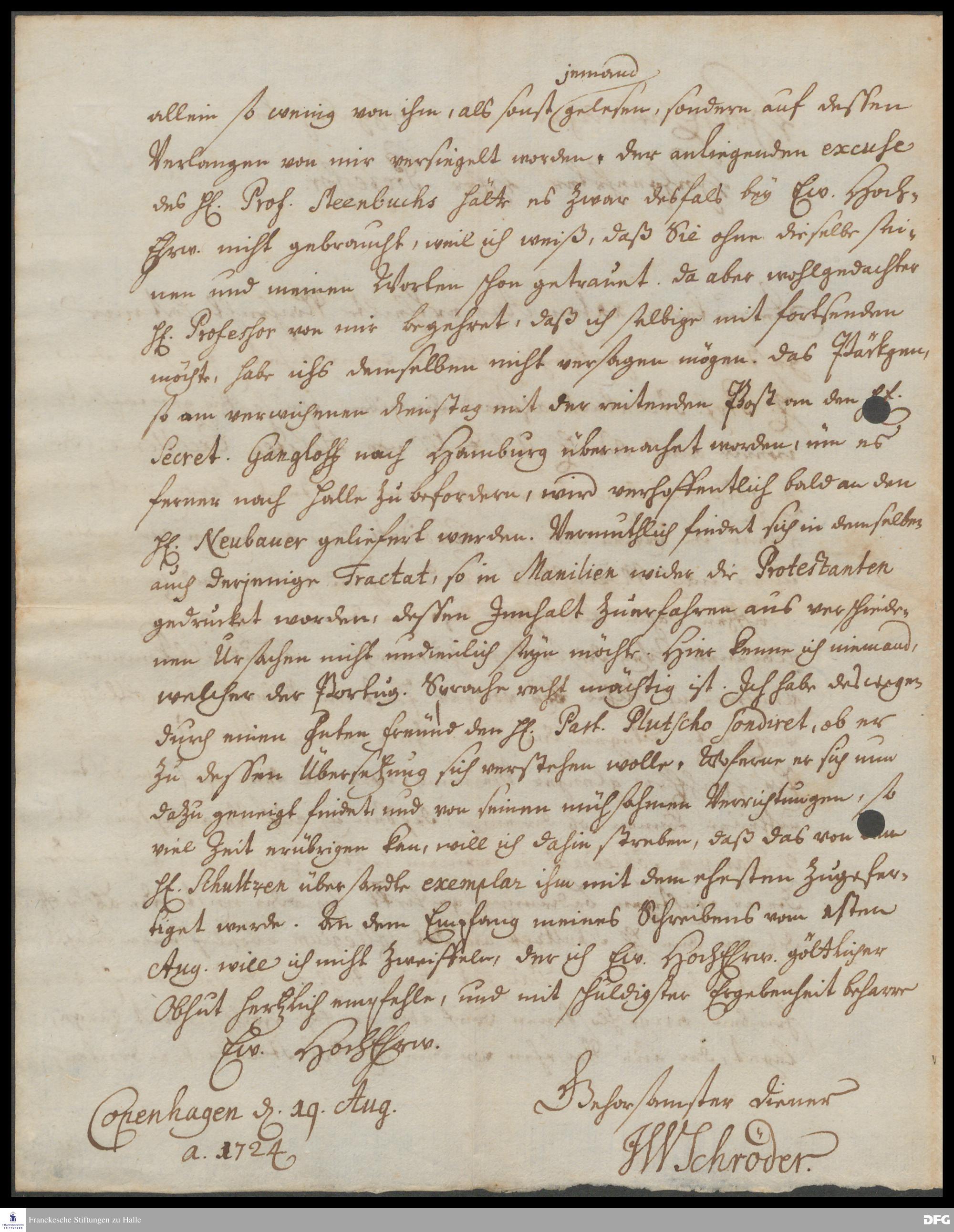 Brief von Johann Wilhelm Schröder an [August Hermann Francke].