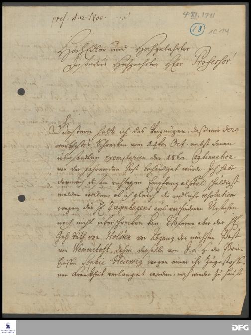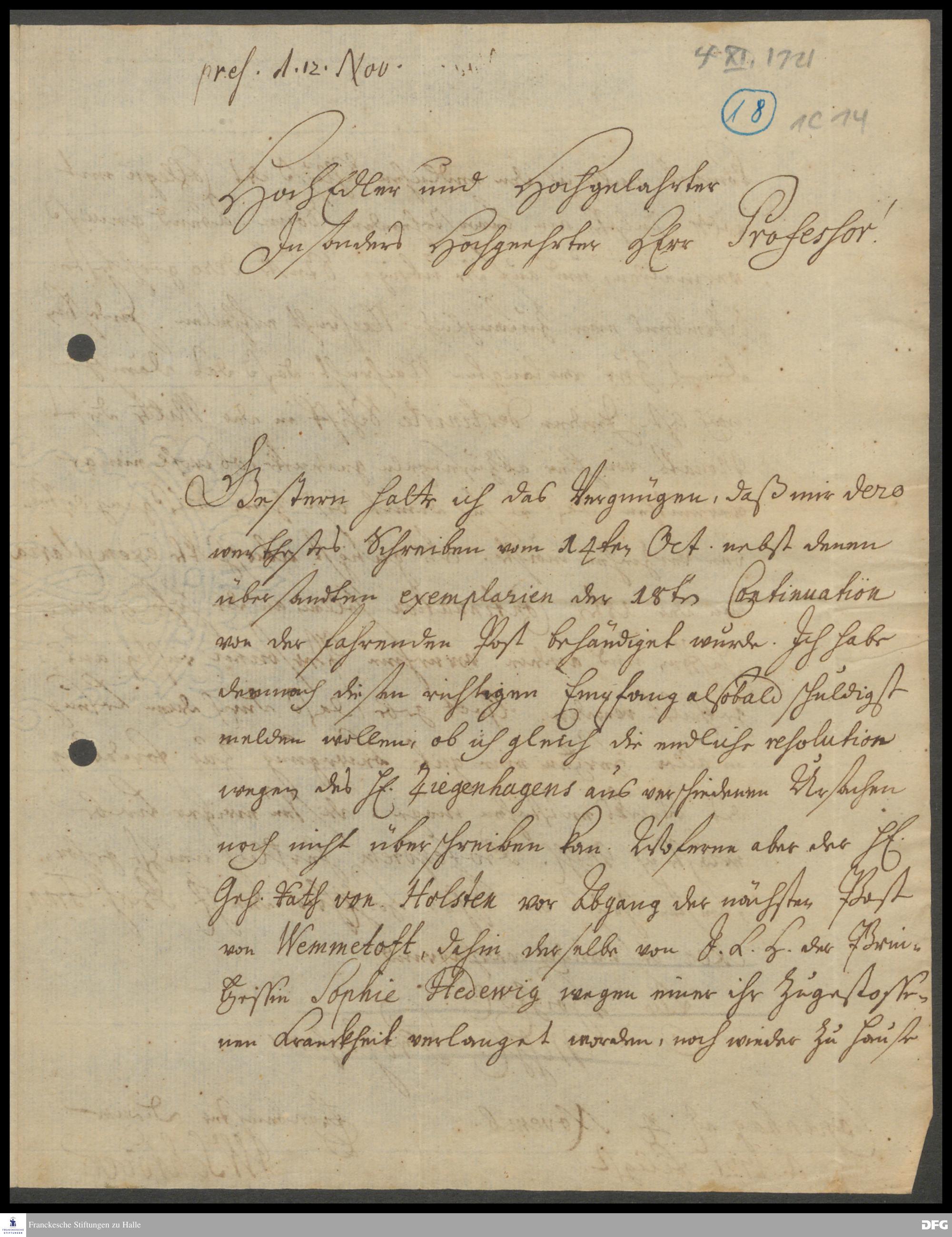 Brief von Johann Wilhelm Schröder an August Hermann Francke.