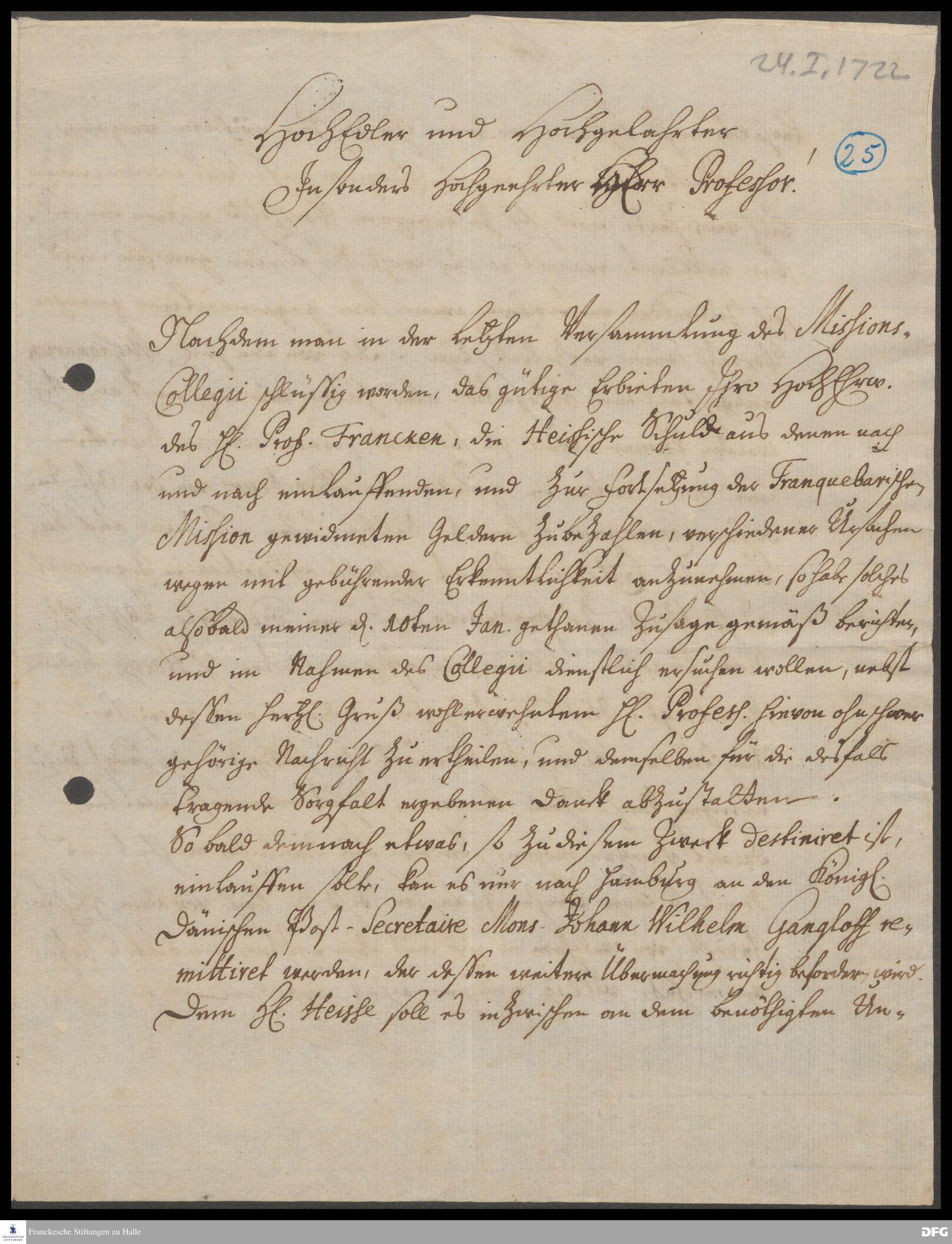 Brief von Johann Wilhelm Schröder an August Hermann Francke.