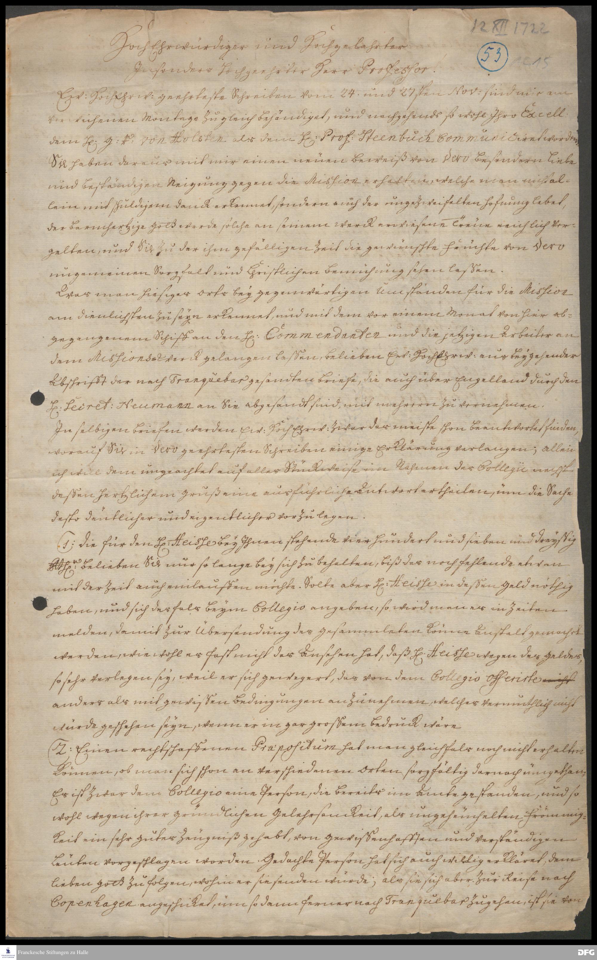 Brief von Johann Wilhelm Schröder an August Hermann Francke.