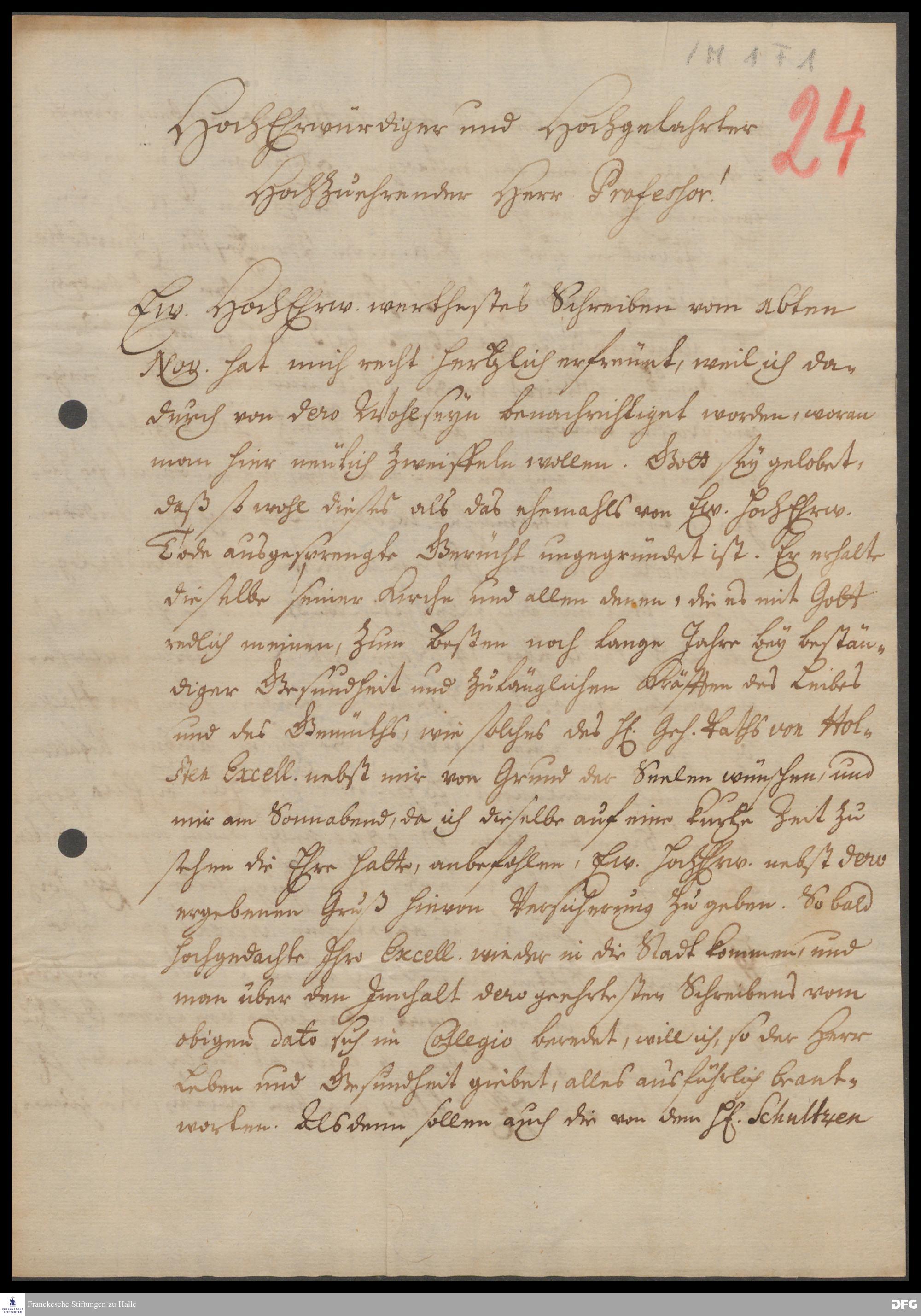 Brief von Johann Wilhelm Schröder an August Hermann Francke.