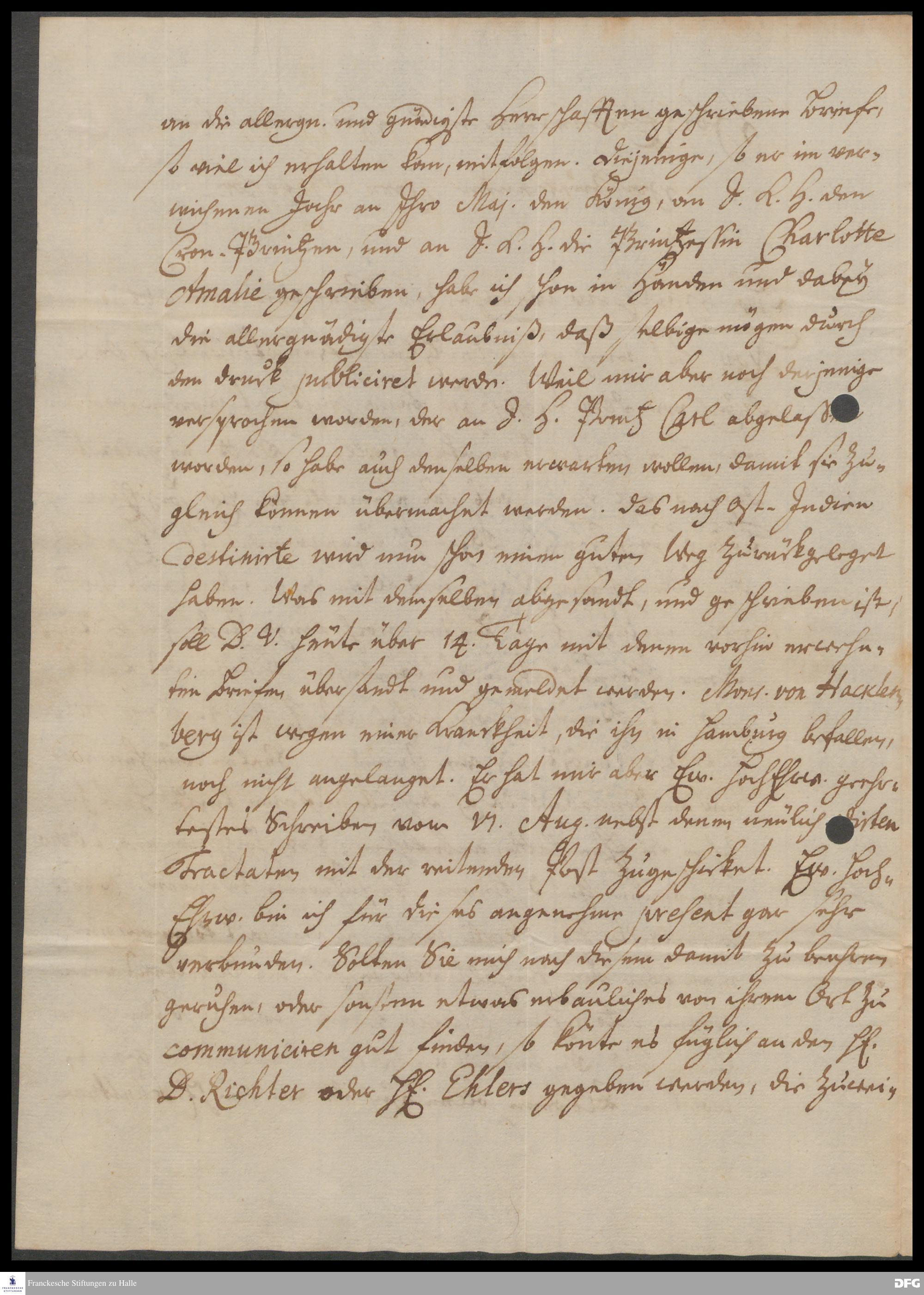 Brief von Johann Wilhelm Schröder an August Hermann Francke.