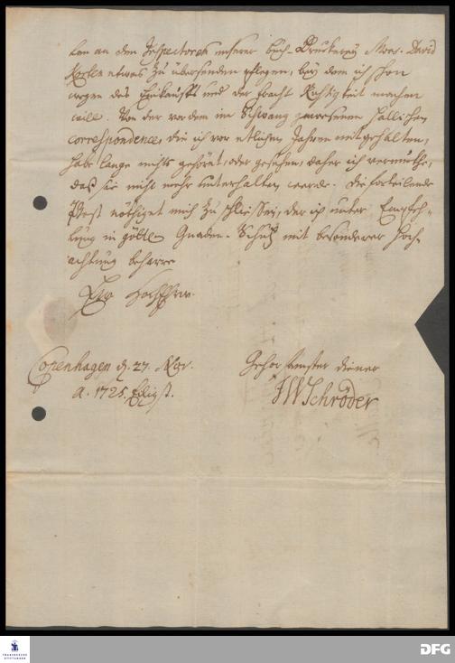 Brief von Johann Wilhelm Schröder an August Hermann Francke.