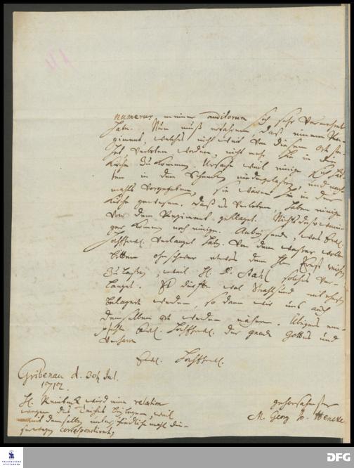 Brief von Georg Johann Hencke an [August Hermann Francke].