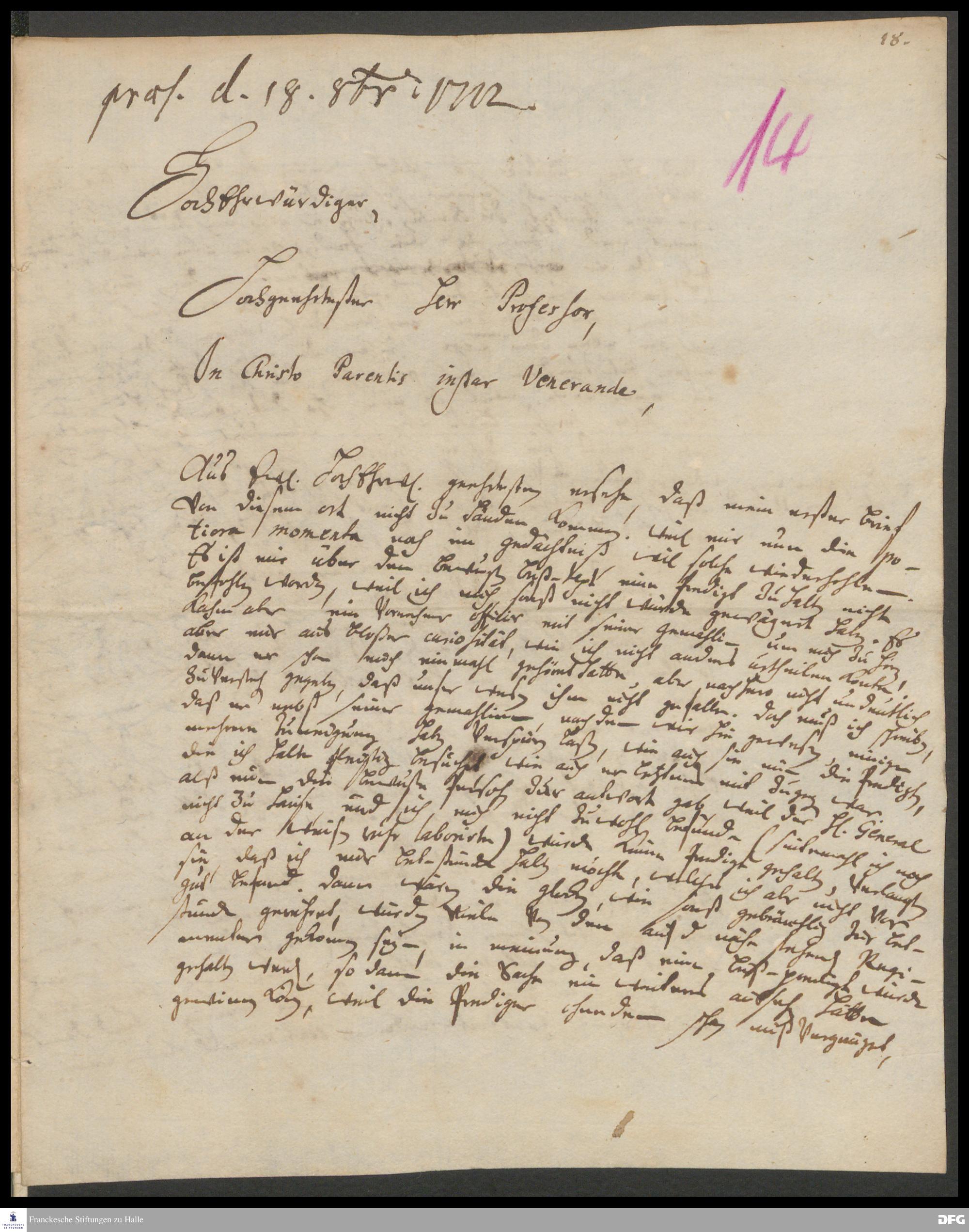 Brief von Georg Johann Hencke an [August Hermann Francke].