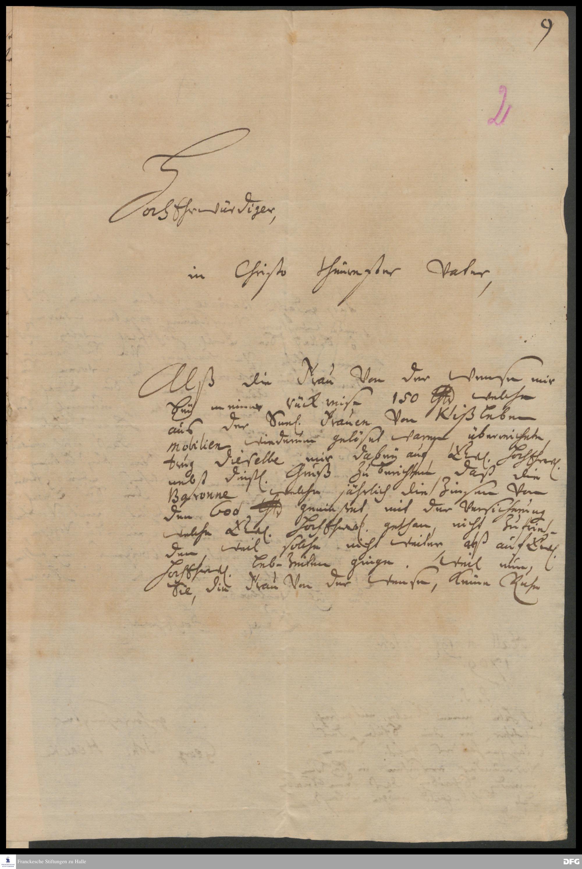 Brief von Georg Johann Hencke an August Hermann Francke.