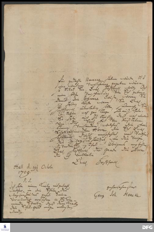 Brief von Georg Johann Hencke an August Hermann Francke.