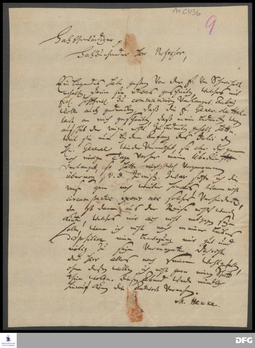 Brief von Georg Johann Hencke an August Hermann Francke.