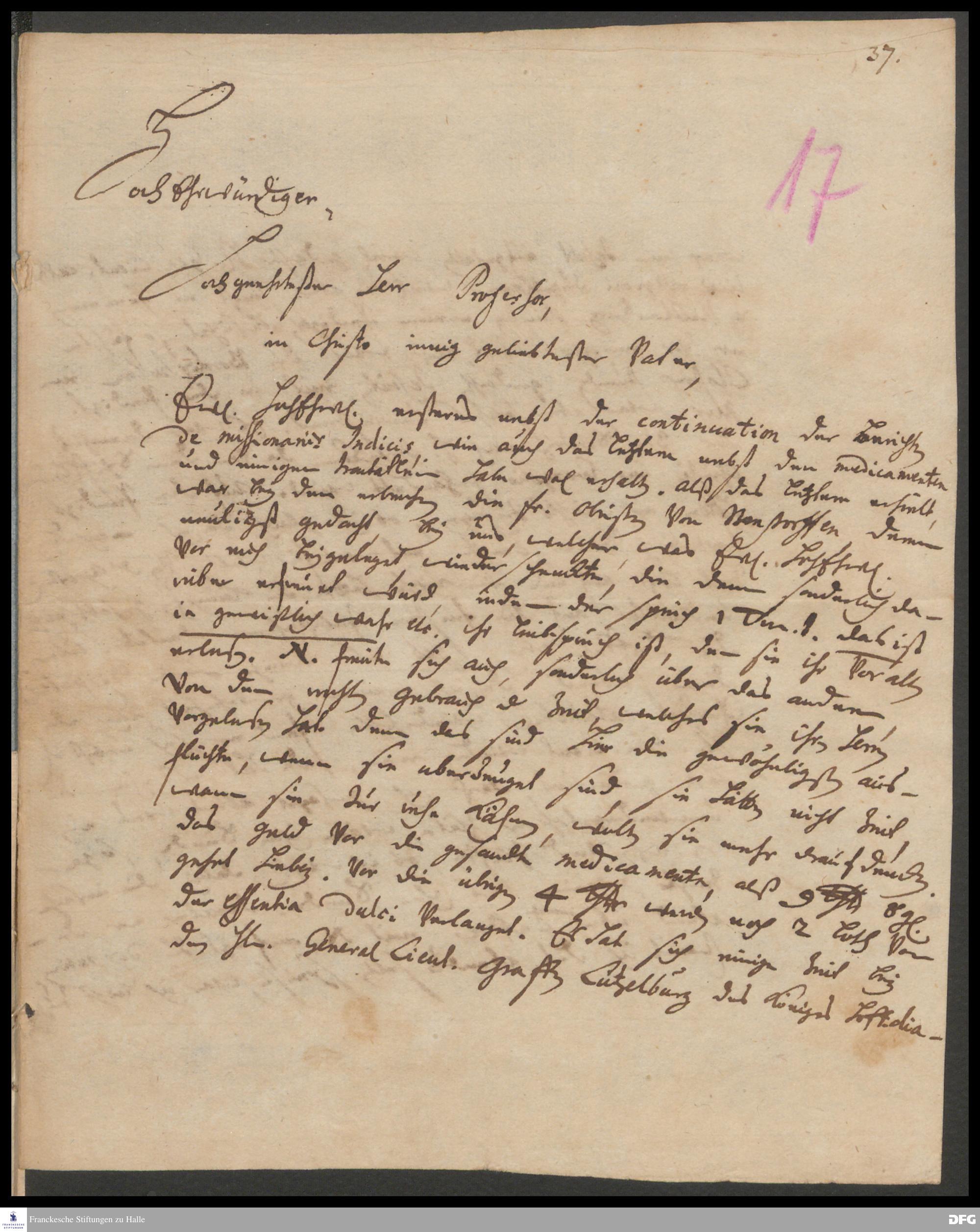Brief von Georg Johann Hencke an August Hermann Francke.
