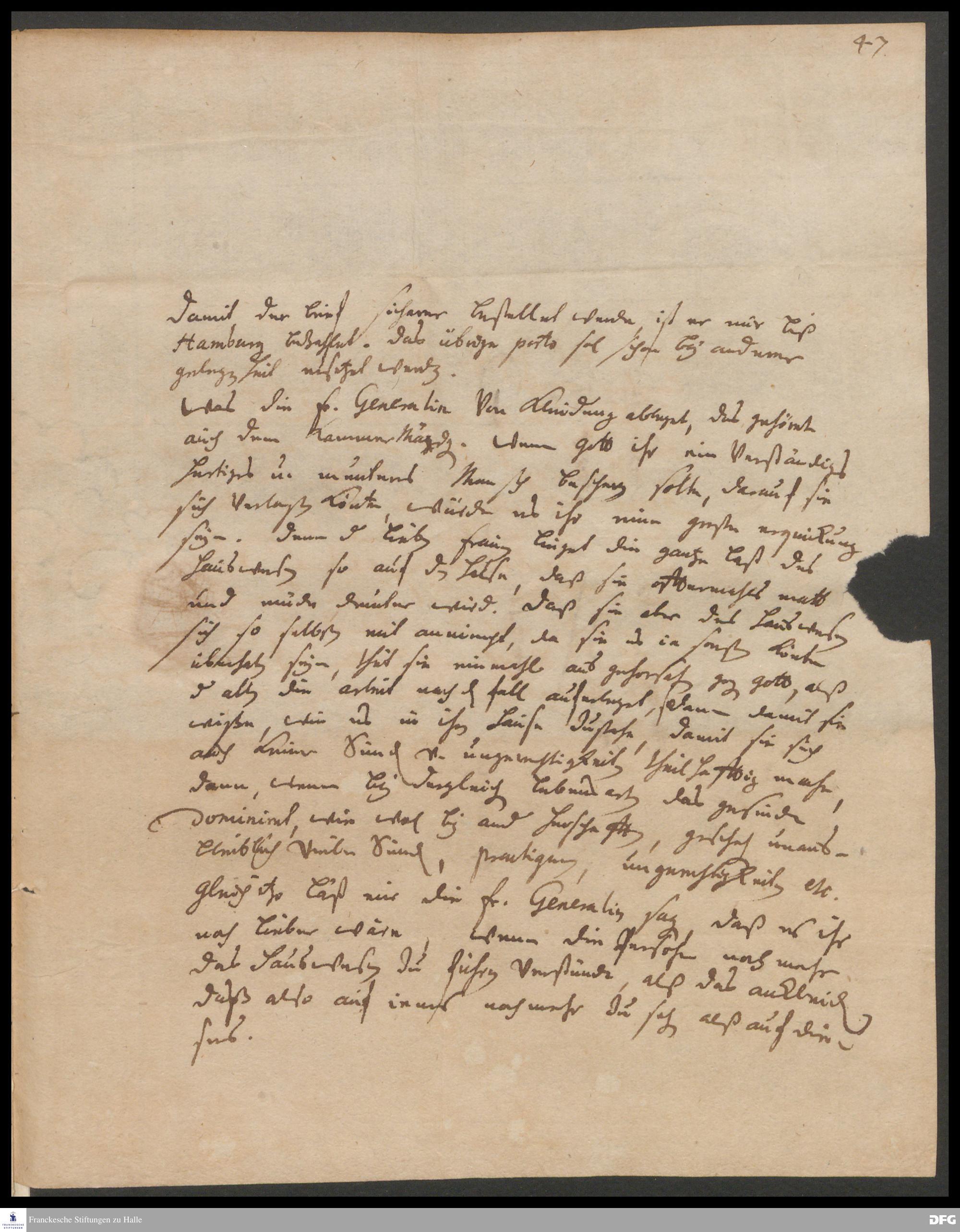 Brief von Georg Johann Hencke an August Hermann Francke.