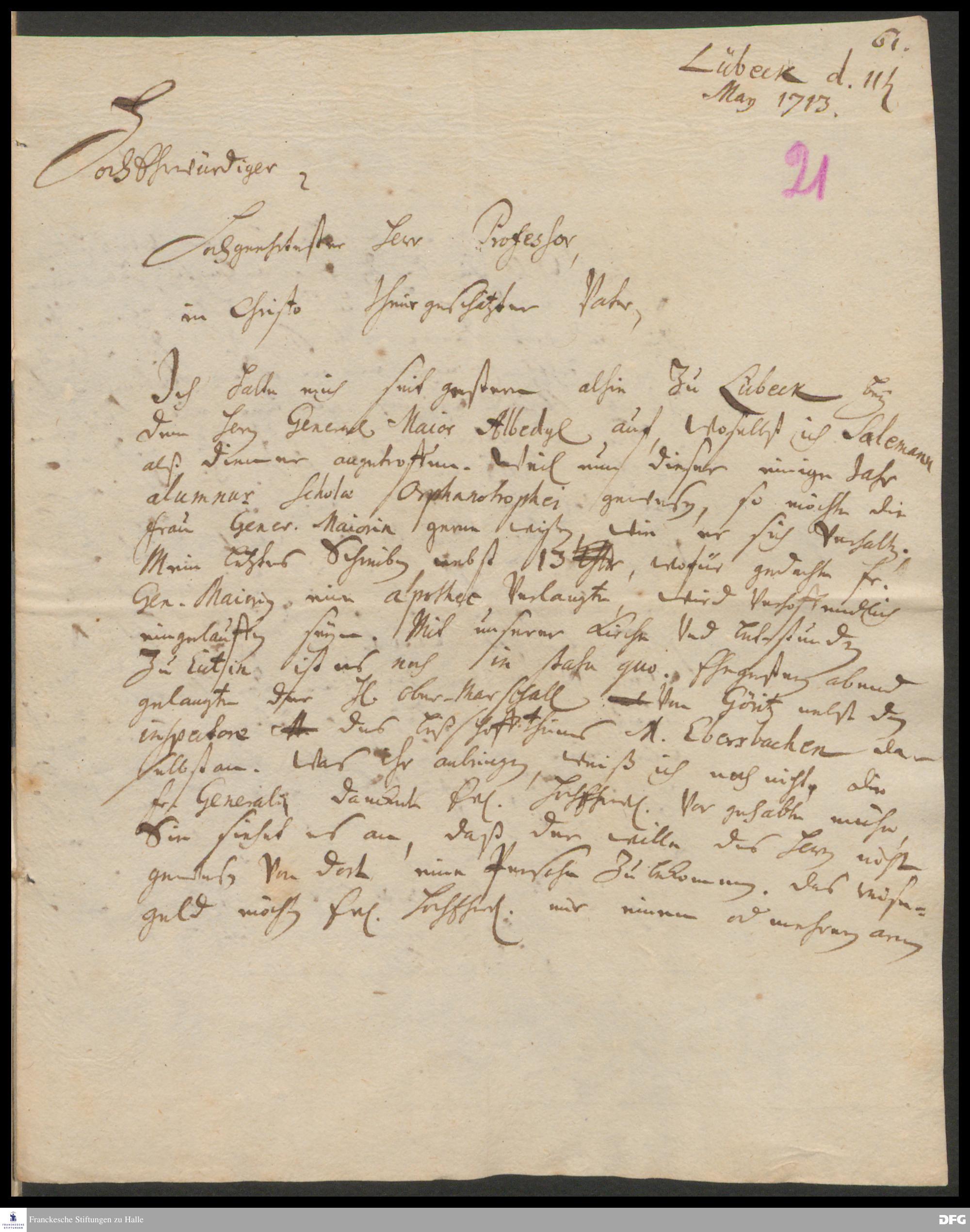 Brief von Georg Johann Hencke an August Hermann Francke.