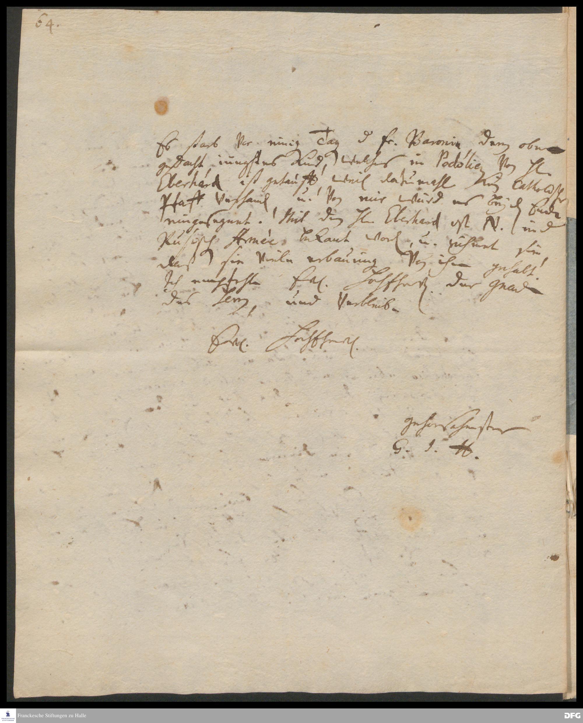 Brief von Georg Johann Hencke an August Hermann Francke.
