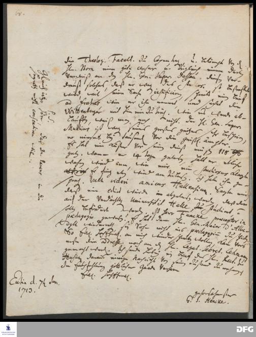 Brief von Georg Johann Hencke an August Hermann Francke.