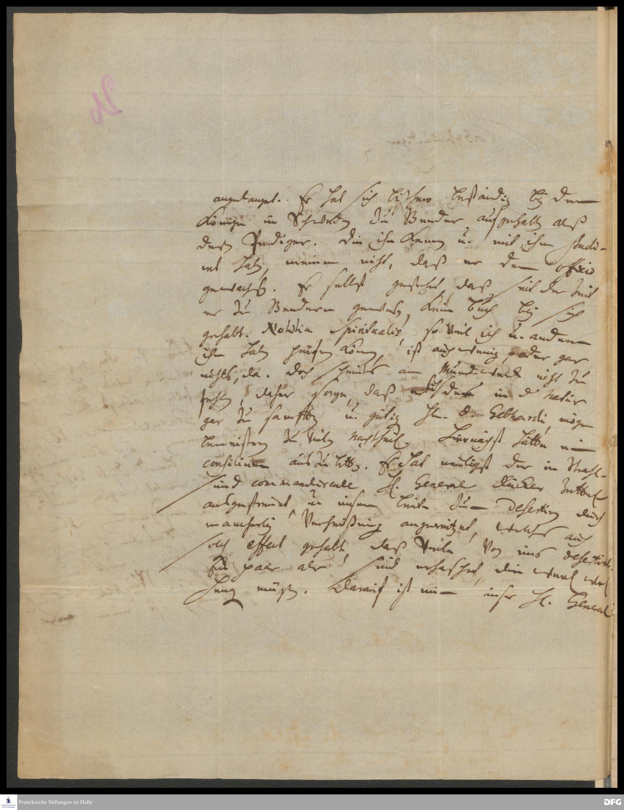Brief von Georg Johann Hencke an August Hermann Francke.