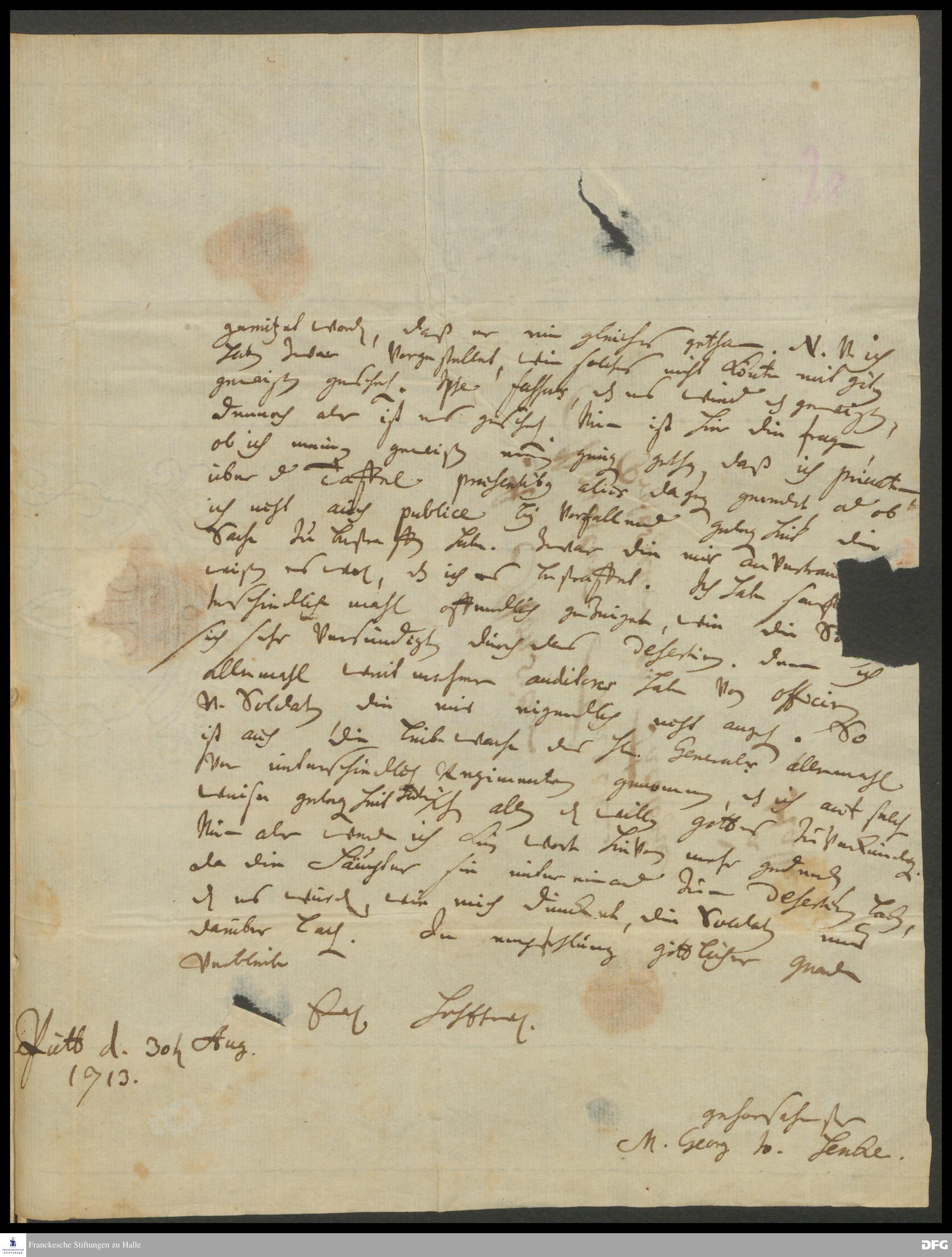 Brief von Georg Johann Hencke an August Hermann Francke.