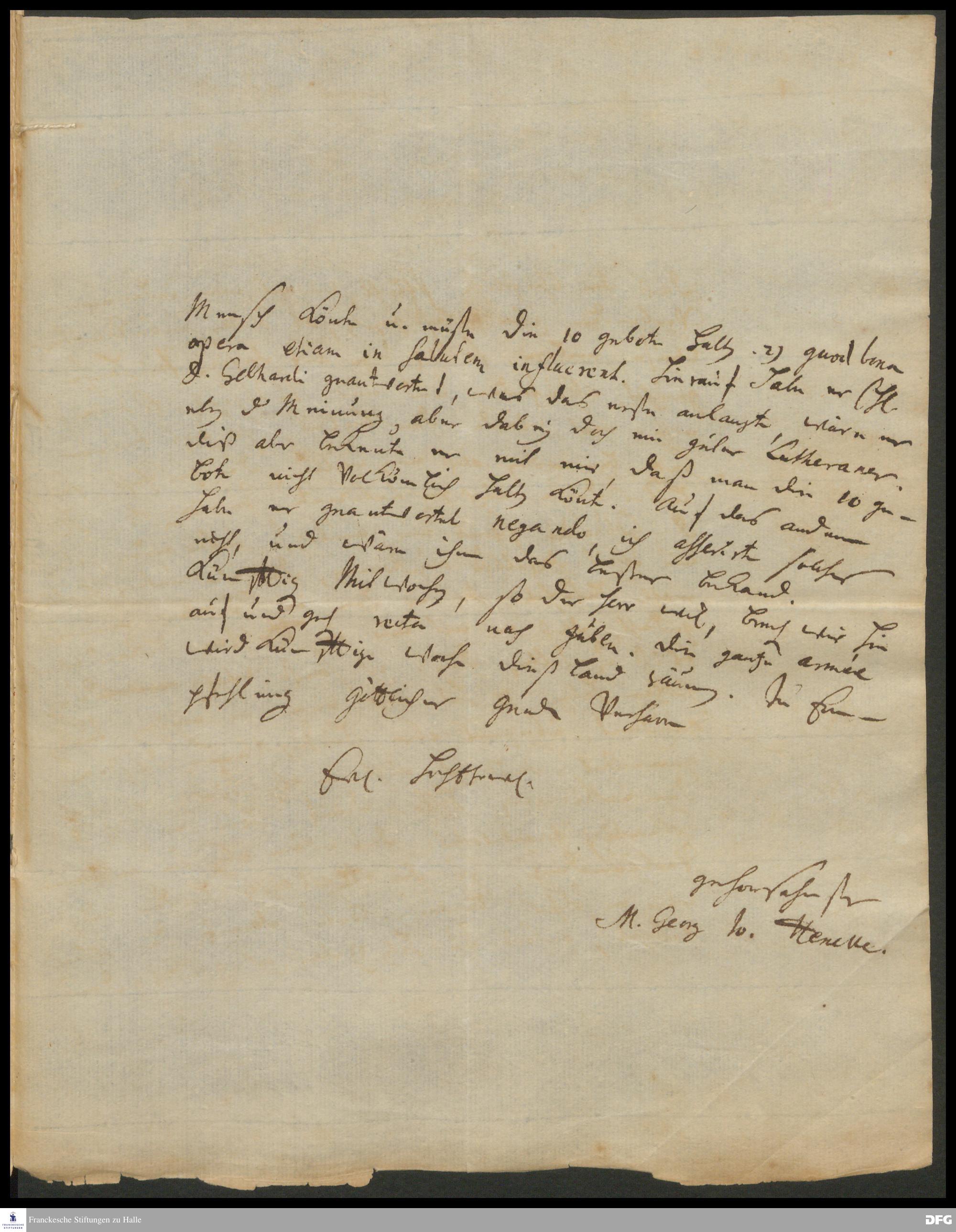 Brief von Georg Johann Hencke an August Hermann Francke.