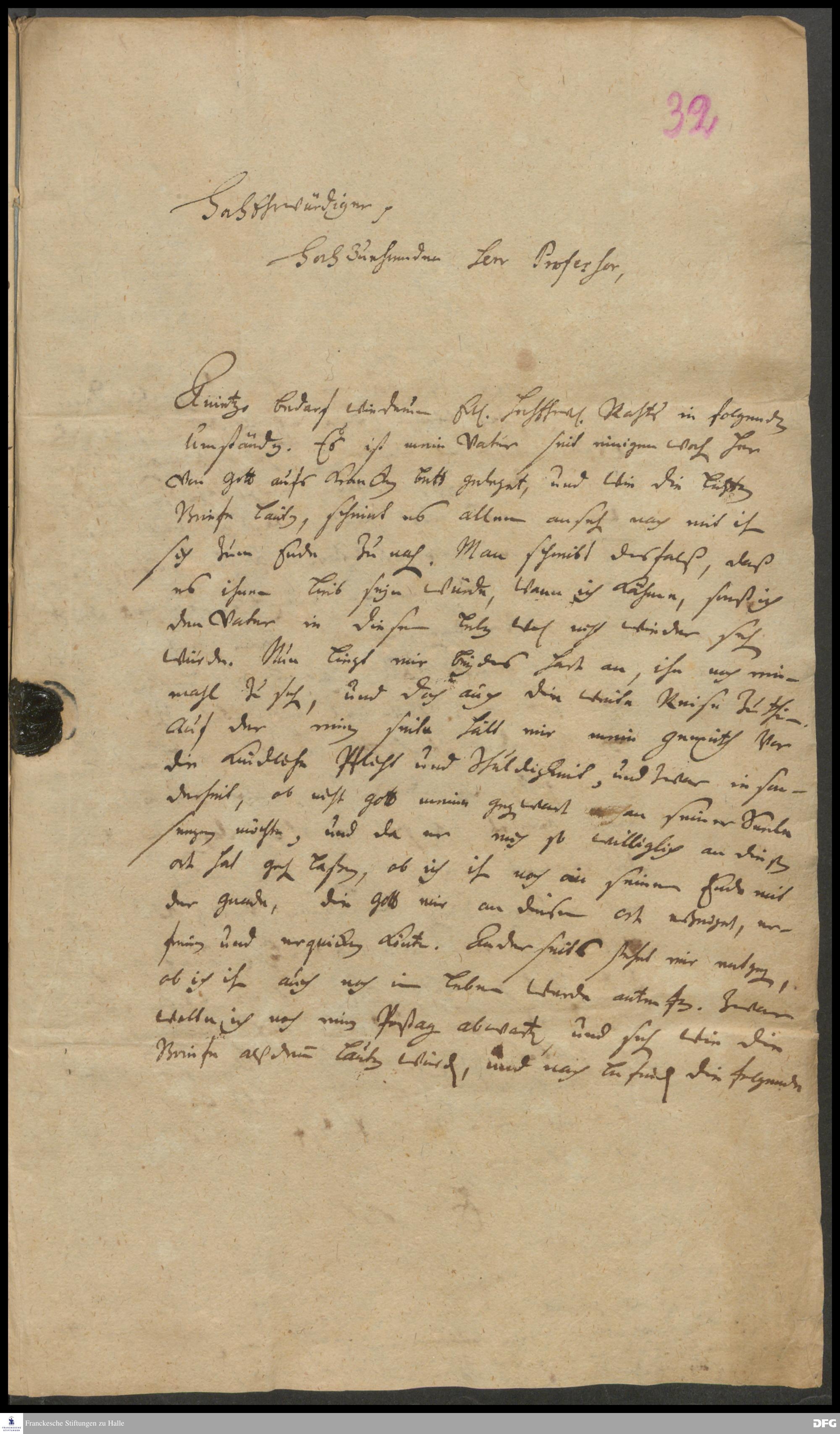 Brief von Georg Johann Hencke an August Hermann Francke.